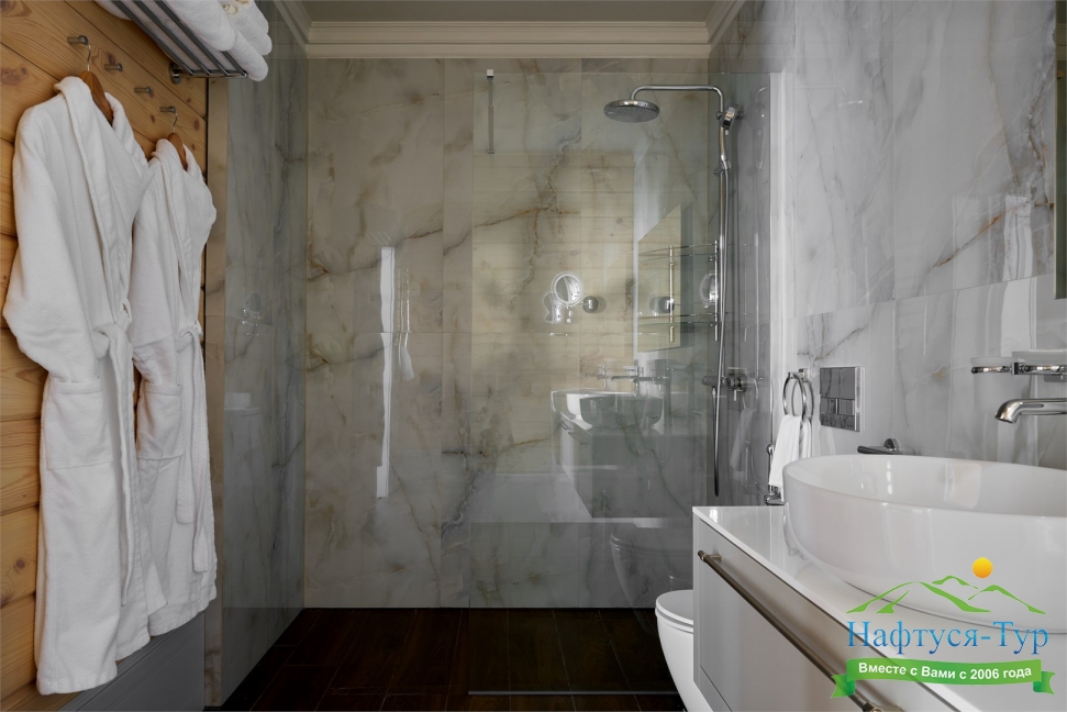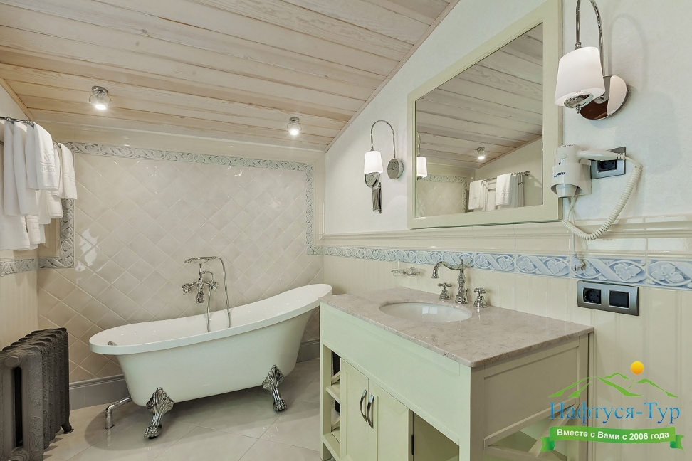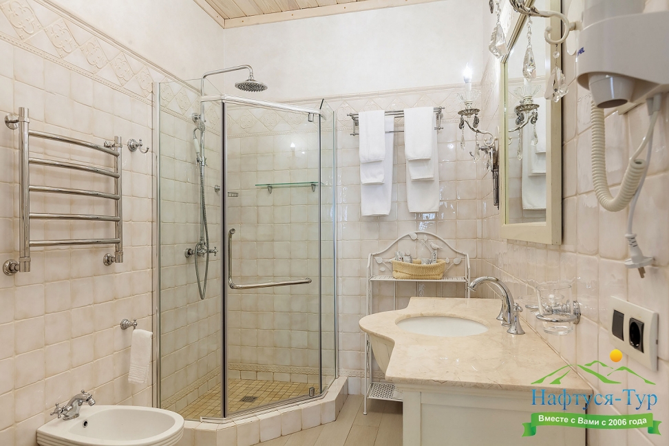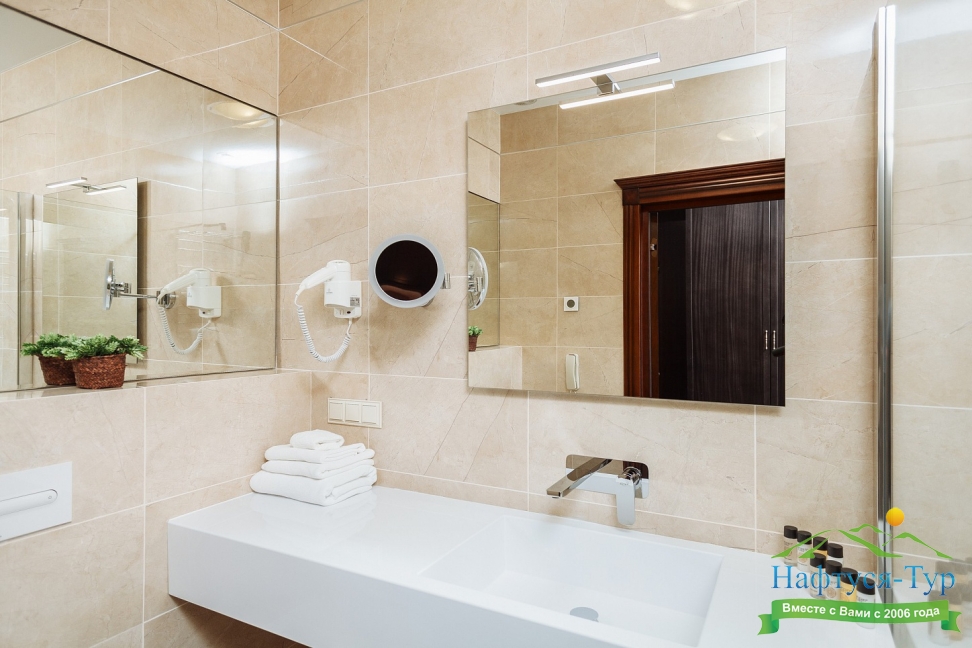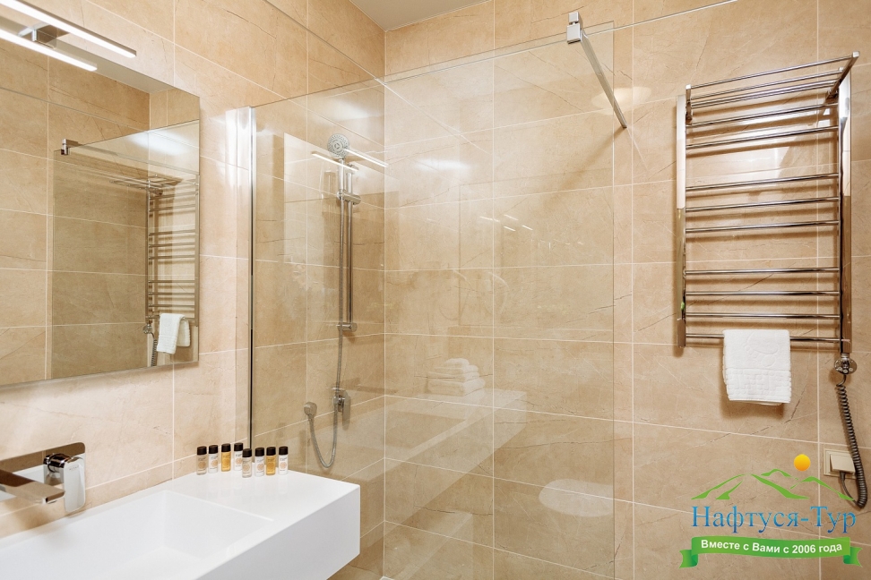 с ванной, с душевой кабиной, туалетные принадлежности, фен