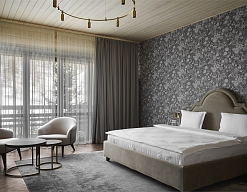 кресла, кровать двуспальная, прикроватные тумбочки, столик журнальный