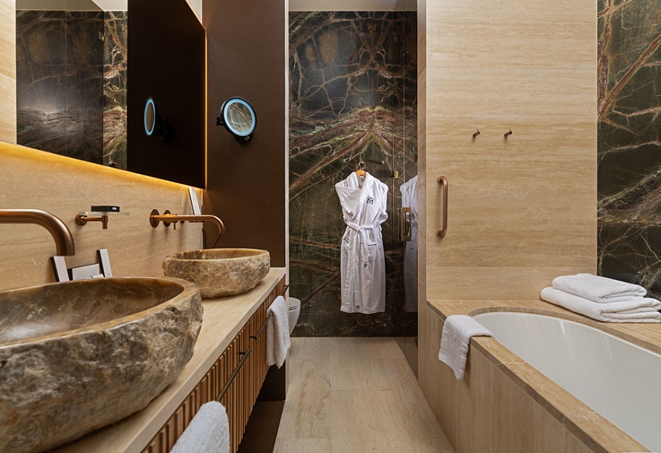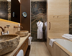 с ванной/душем, тапочки, туалетные принадлежности, фен, халат
