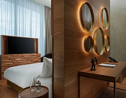 кровать двуспальная, прикроватная тумбочка, стол, стул, шкаф