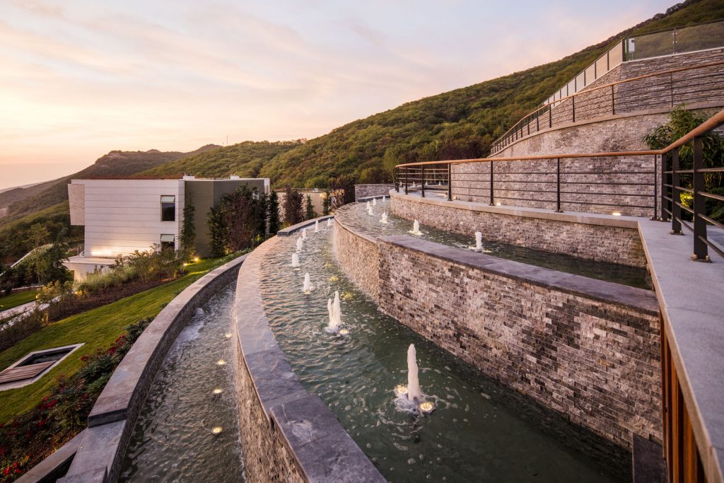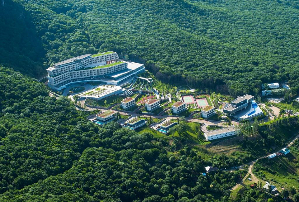 Комплекс занимает благоустроенную территорию, расположенную среди горного леса под живописной навесистой скалой. Спа-отель включает в себя основной многоэтажный корпус, выстроенный в интересных современных формах, три виллы, отдельное здание спа-комплекса с поликлиникой и фитнес-центр. Жилой фонд предлагает гостям комфортабельные номера Сюит и Супериор. В комнатах дизайнерский интерьер, установлена система кондиционирования, просторная ванная комната, имеется вся необходимая бытовая техника, некоторые номера оснащены кофемашиной.