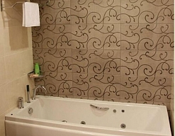 с ванной, тапочки, туалетные принадлежности, фен, халат