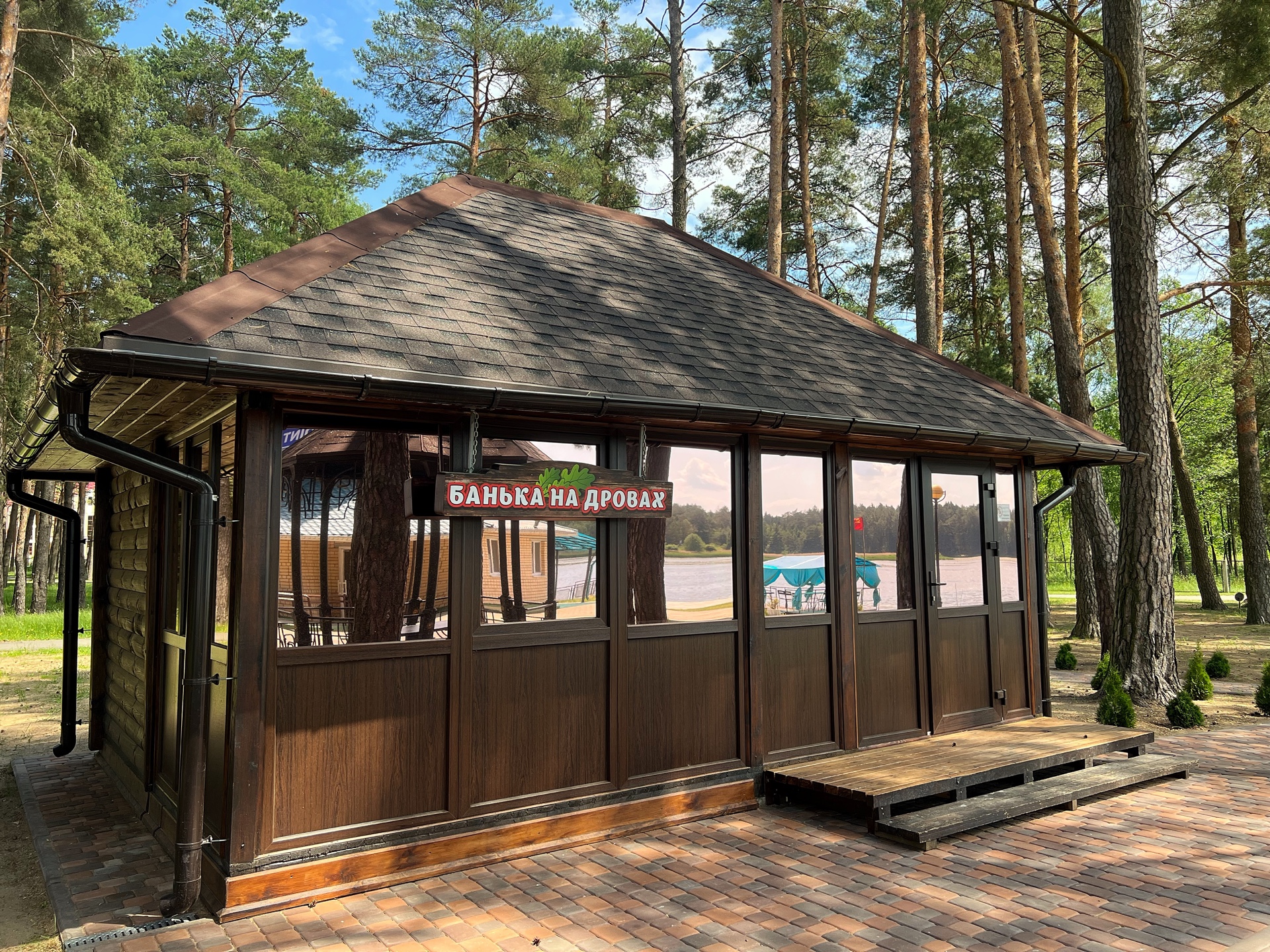 - баня на дровах расположена непосредственно на берегу красивейшего озера.
