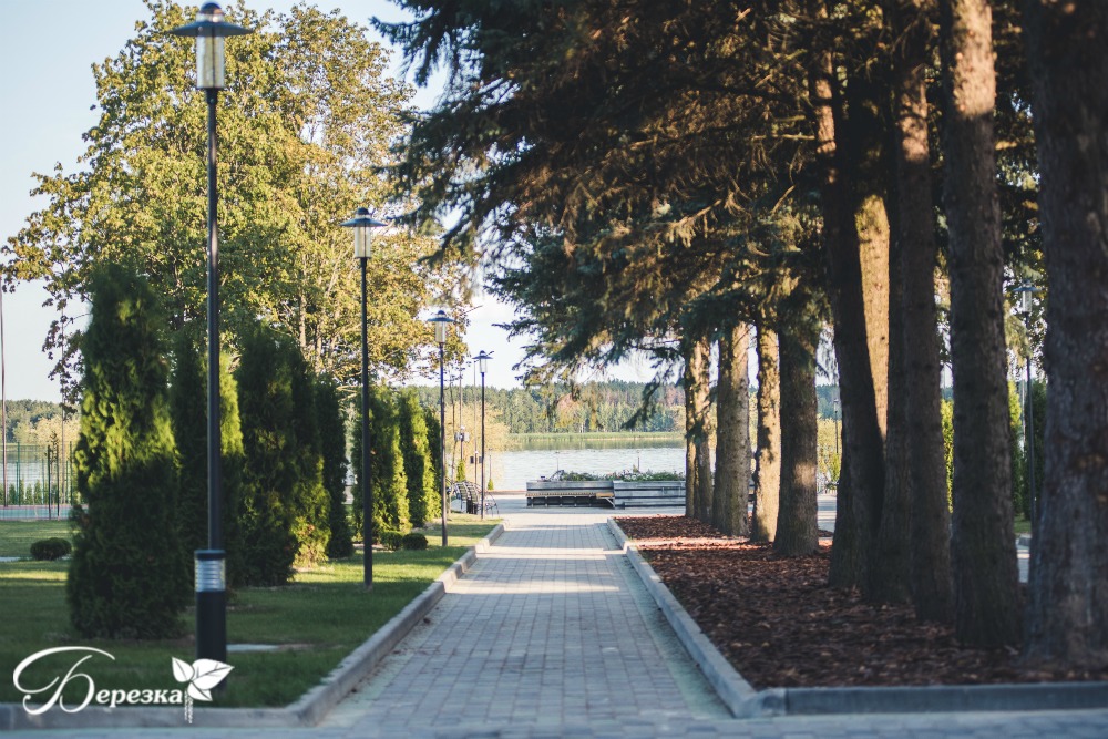 На нем расположено множество беседок для отдыха, установлены стационарные мангалы, также там обустроена танцевальная площадка, а любители рыбалки с огромным удовольствием смогут посидеть с удочкой на берегу.