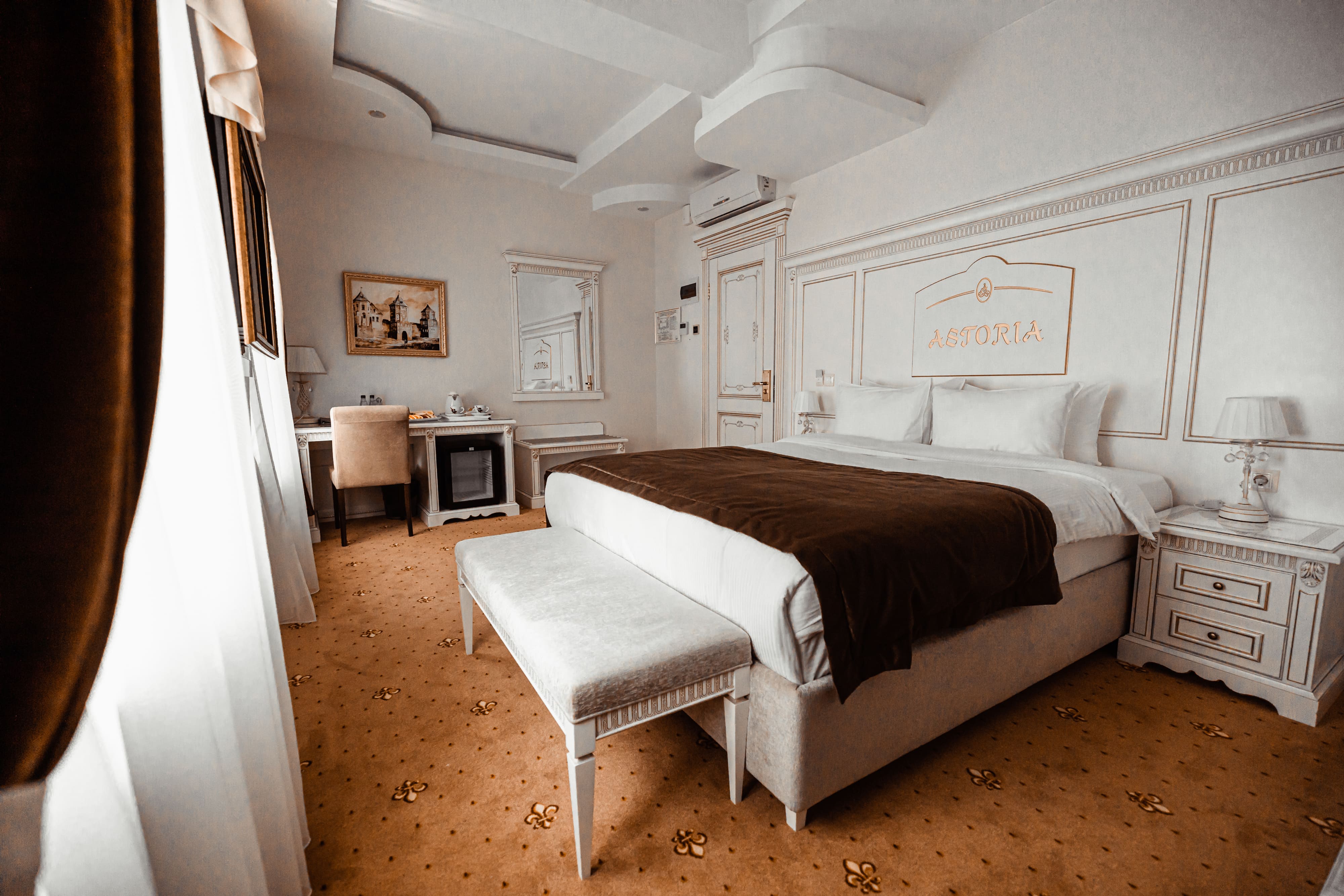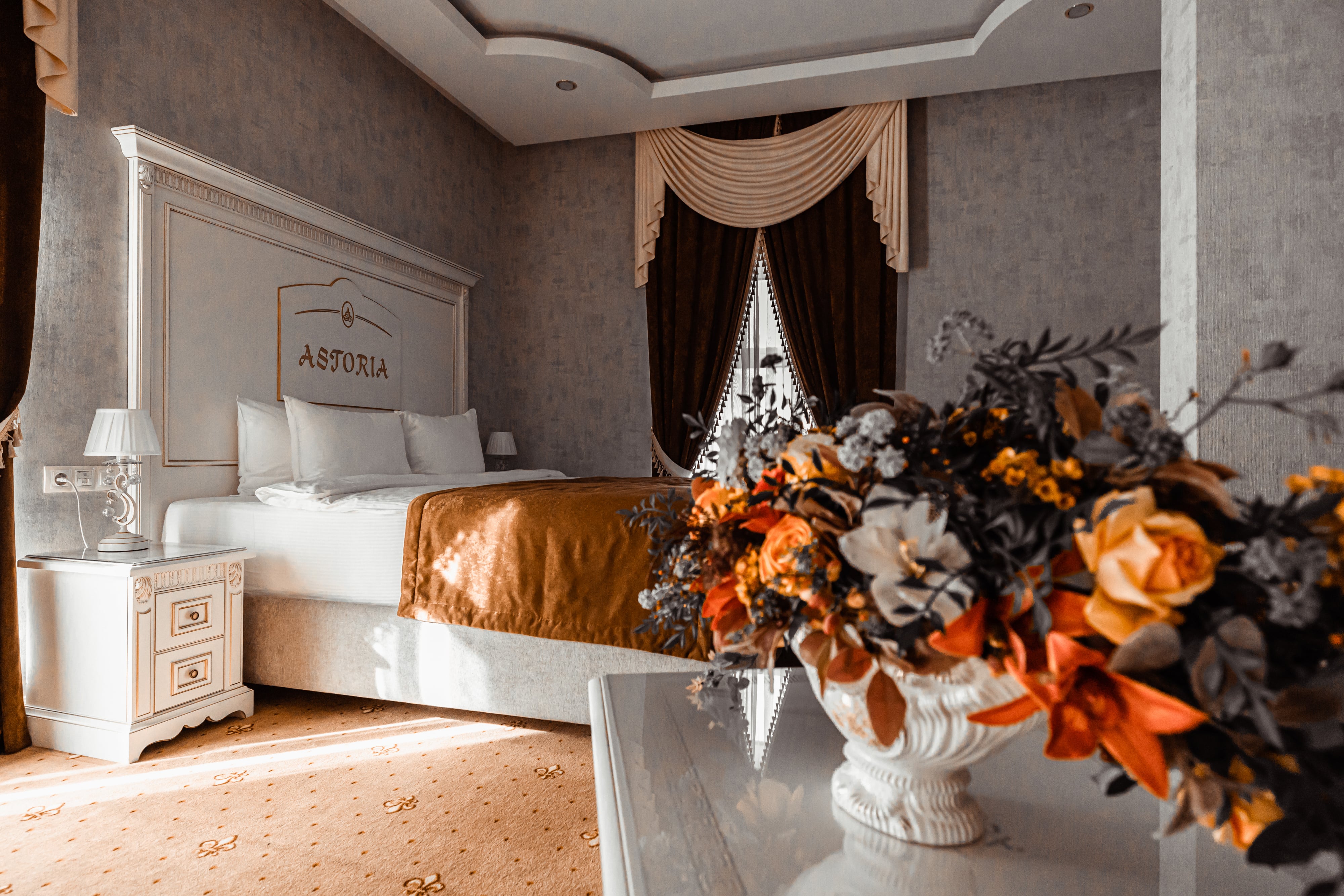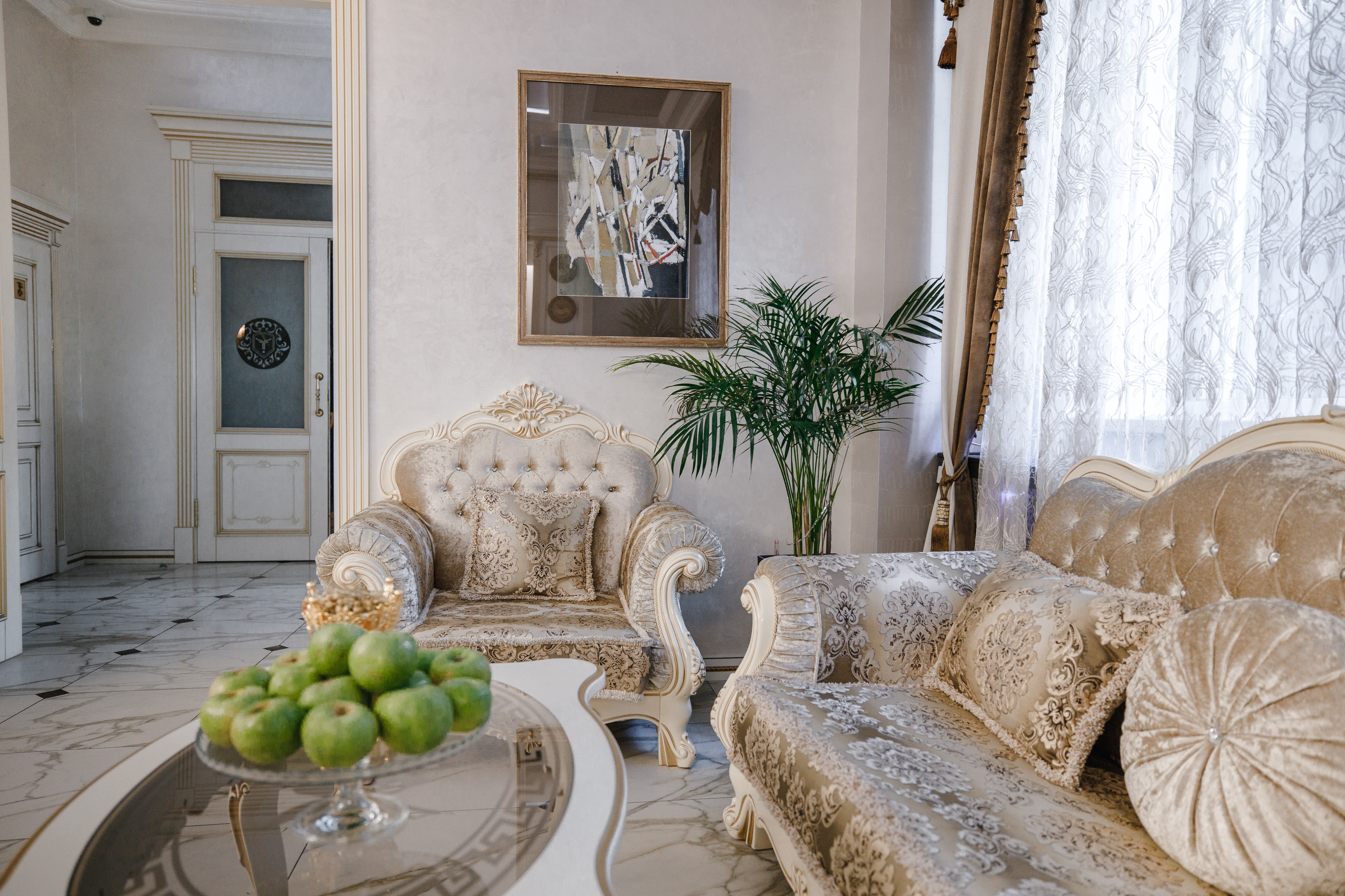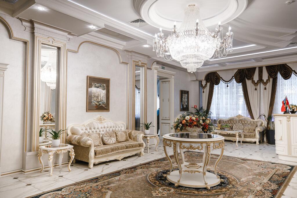 Отель IMPERIAL PALACE в центре Минска – это изысканное сочетание истории и современности. Интерьер Отеля выполнен в роскошном классическом стиле. В убранстве номеров доминируют оттенки жемчуга и слоновой кости, мебель и аксессуары из натурального дерева украшены росписью и позолотой.