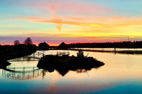 Экоотель «Кветкi Яблынi» находится в Минской области на живописном берегу Вилейского водохранилища, в месте слияния двух рек: Вилия и Сервач. Раньше здесь находилась деревня Сутоки (от бел. «слияние рек»).