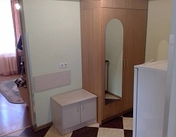 вешалка, диван, зеркало, кровати односпальные, кухонная мебель, прикроватные тумбочки, стол, стулья, шкаф