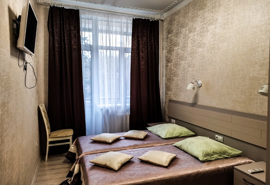 Номер стандарт на 2х с балконом. 2 кровати односпальные, мягкие и удобные.