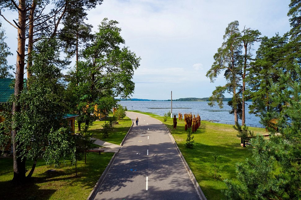 На территории есть спортивные площадки, игровые зоны, библиотека, киноконцертный зал, пляжная зона и возможности для активного и творческого досуга.
