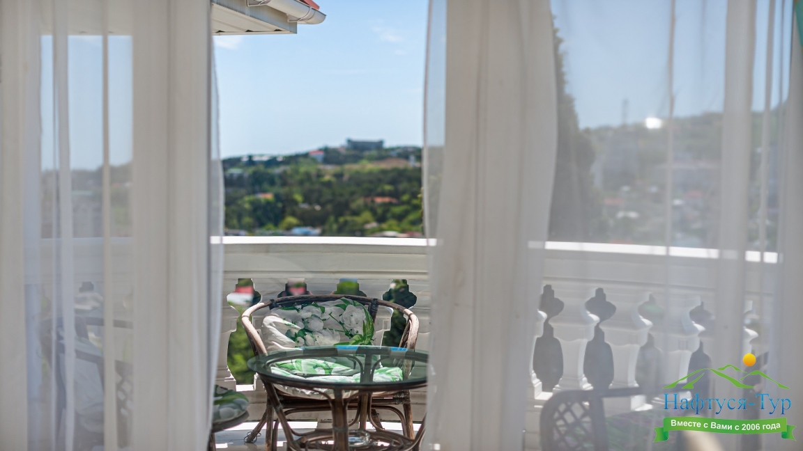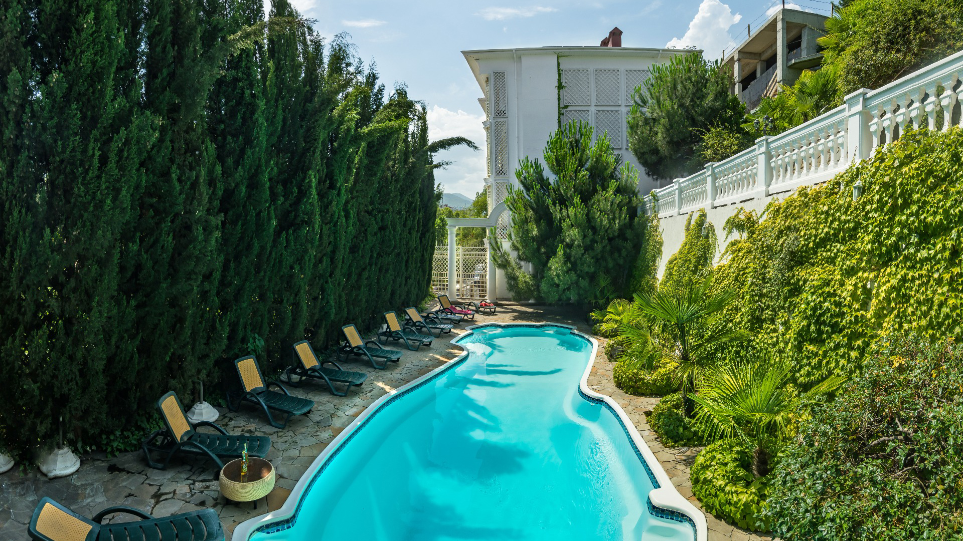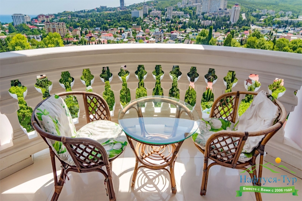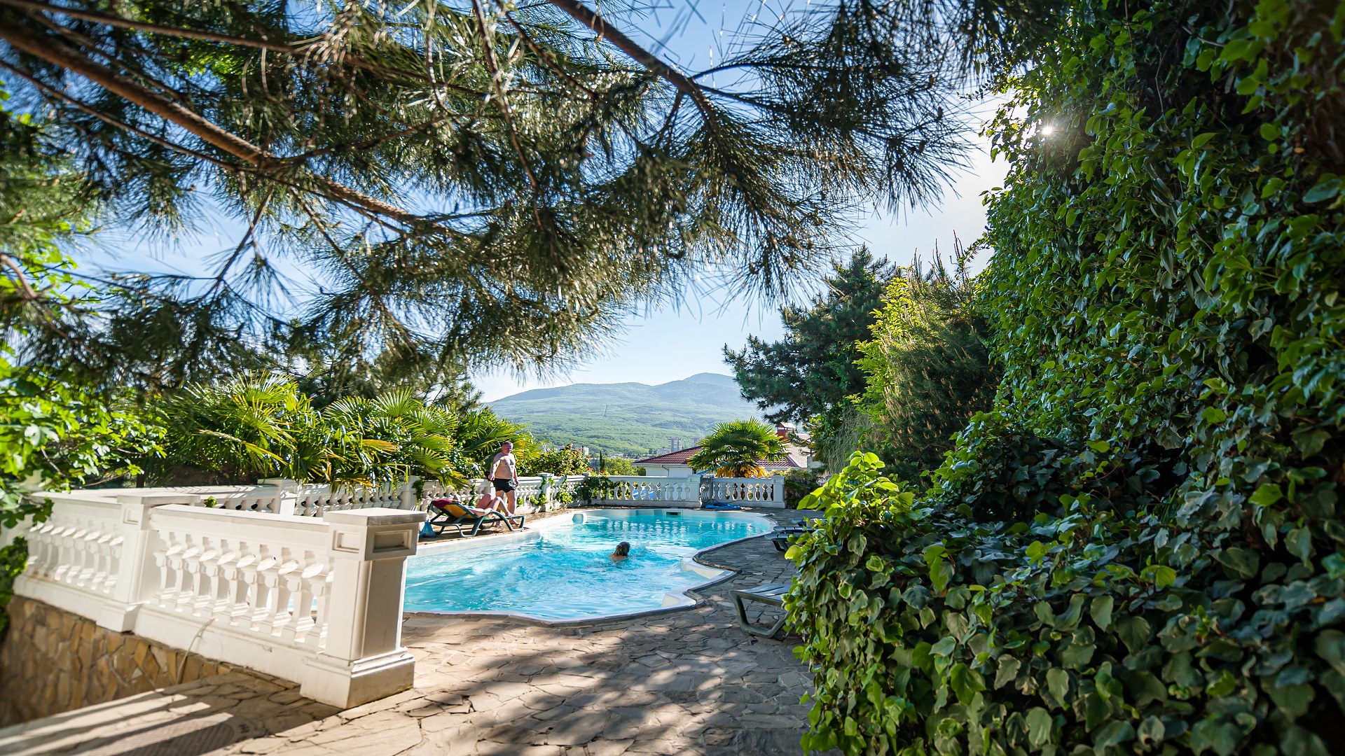 Самолетом до аэропорта г. Симферополь, далее на троллейбусе №20 до остановки «Железнодорожный вокзал», далее на автобусе «Ялта-Черноморское» до остановки «Заповедник», далее пешком 550 м до виллы.