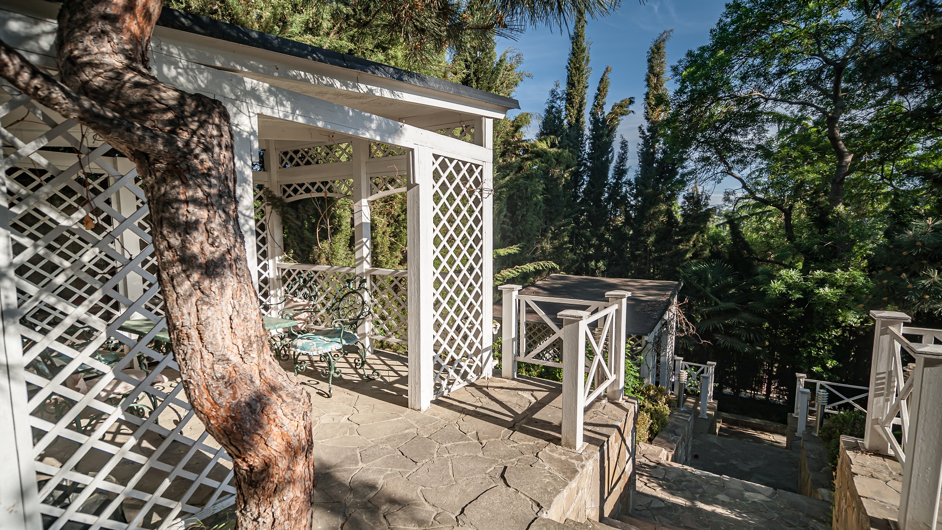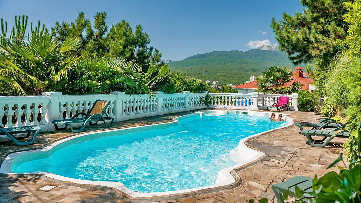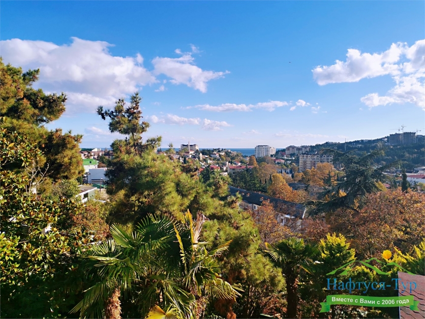 Поездом до ж/д вокзала г. Симферополь, далее на автобусе «Симферополь-Ялта» до остановки «Заповедник», далее пешком 550 м до виллы.
