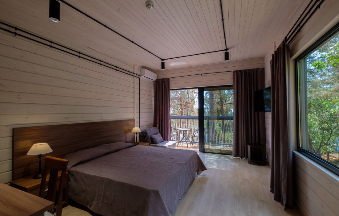 Бунгало Standard – это коттедж с видом на море, рассчитанный на 2 человека с возможным размещением еще 1 дополнительного места на кресло-кровати.