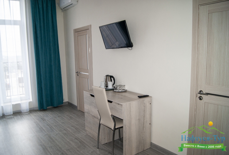 4-местный 2-комнатный семейный (макс. 4 чел., Wi-Fi, телевизор, кондиционер, душ, фен, тапочки, 1,5-спальные/ 2-спальная кровать, диван, туалет, 3-е и 4-е основные места - диван раскладной).