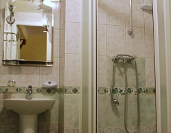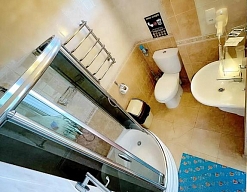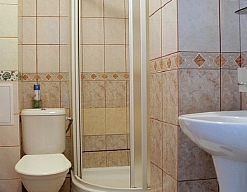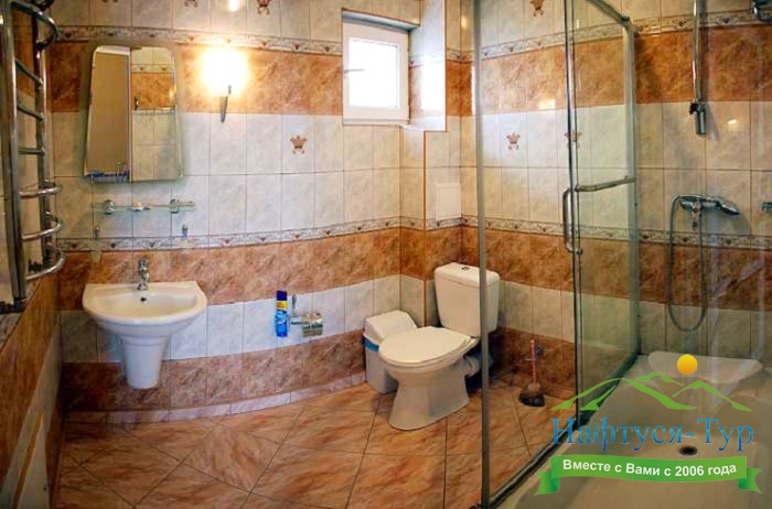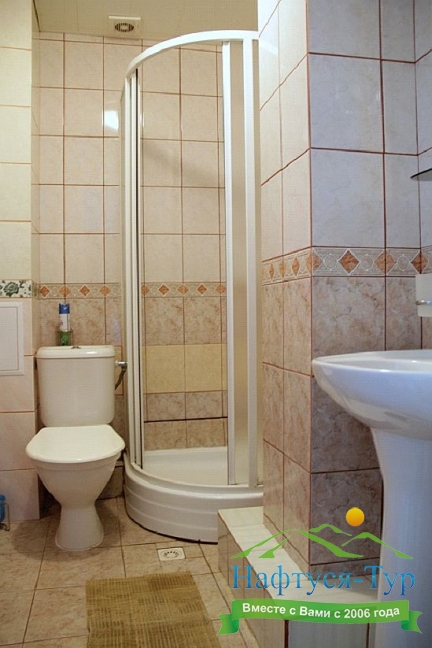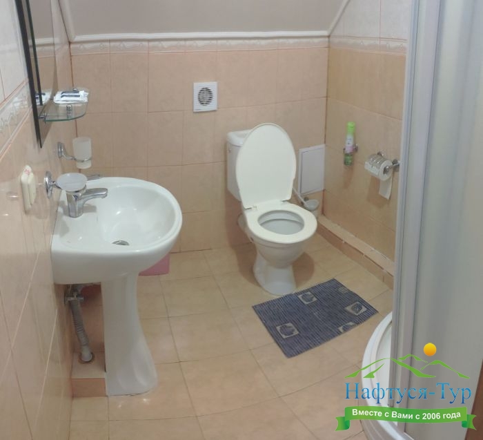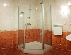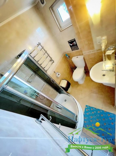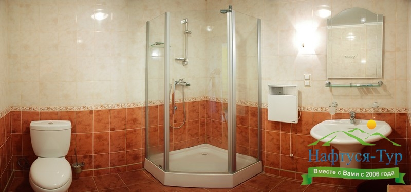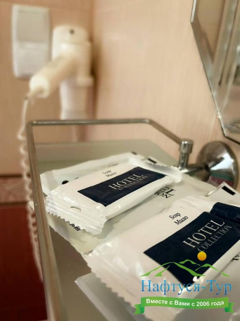 с ванной или душевой кабиной, туалетные принадлежности, фен