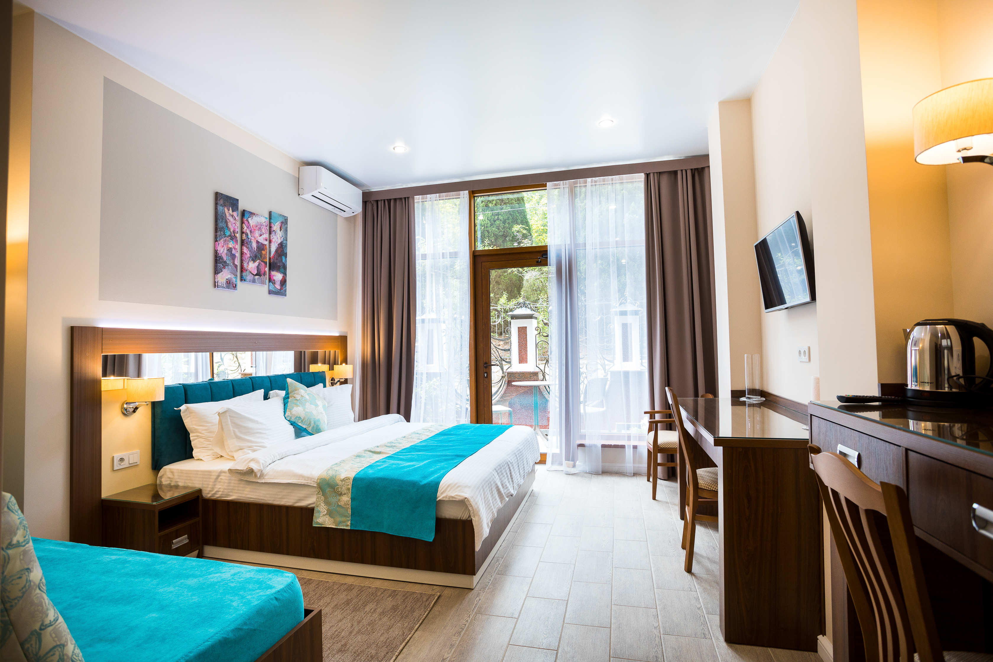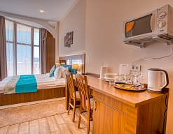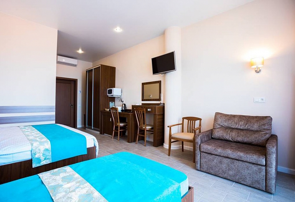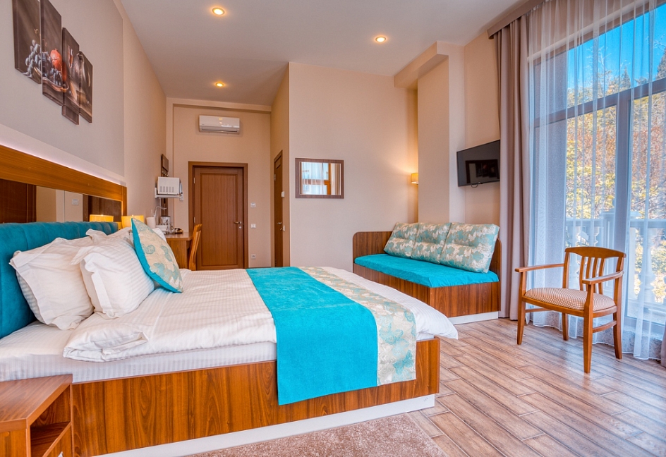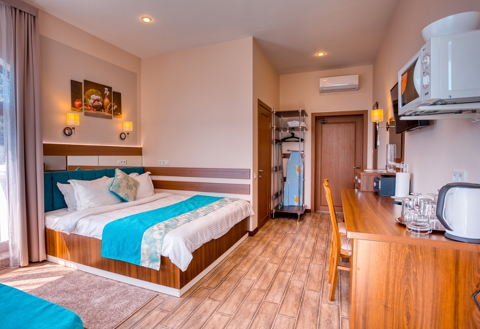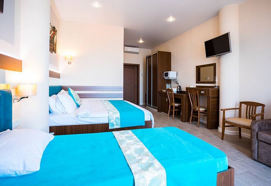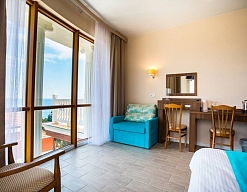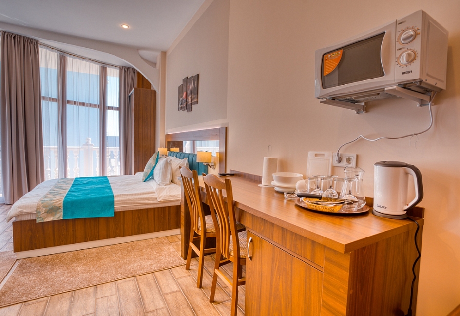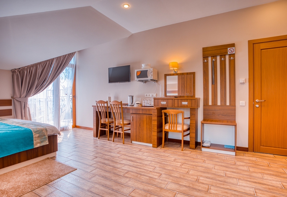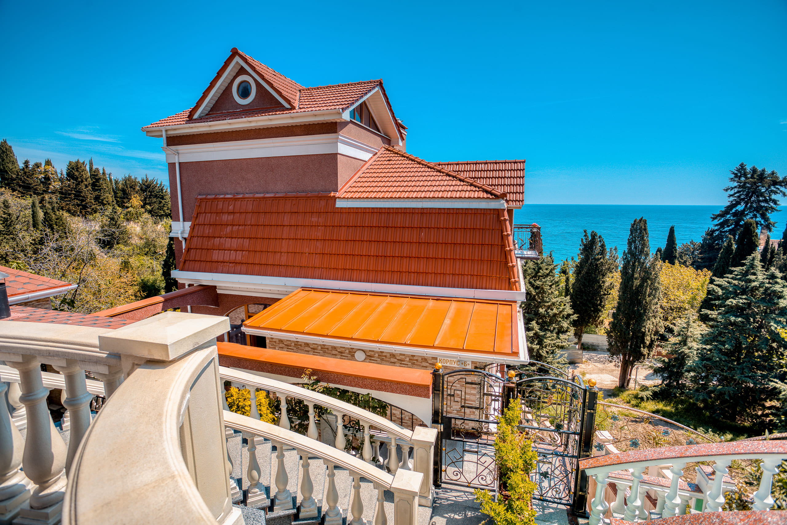 Удачное местоположение с прекрасным видом на море и горы создает условия для приватного элитного проживания и отдыха вдали от шумных дорог, но вблизи с центром курортной жизни города Алушты. До набережной от отеля можно дойти за 7 мин, в пешей доступности: магазины, кафе, столовая и многое другое.