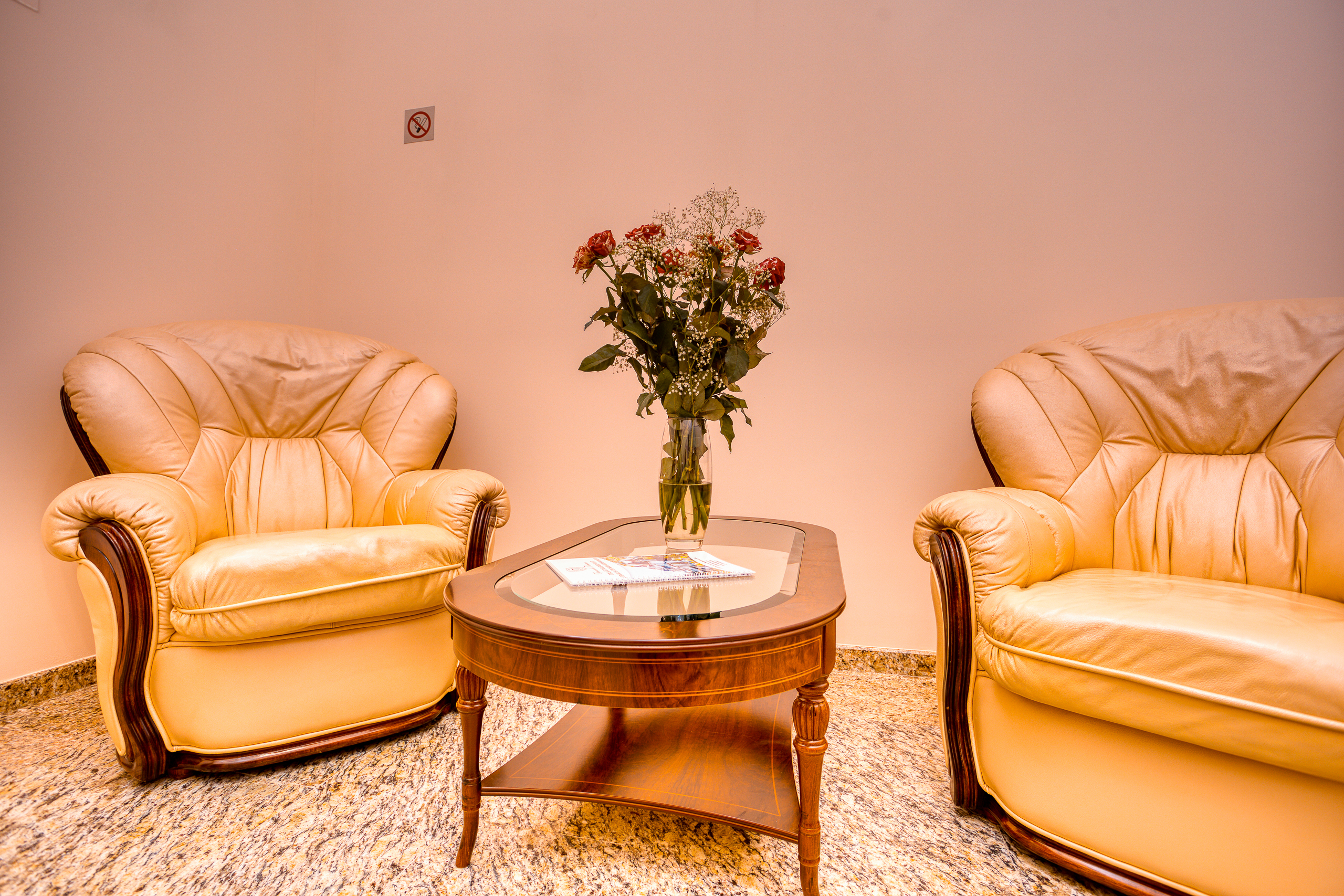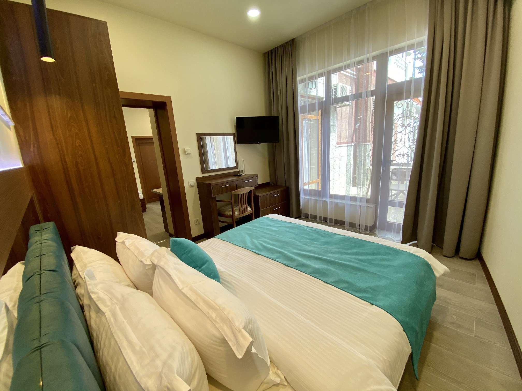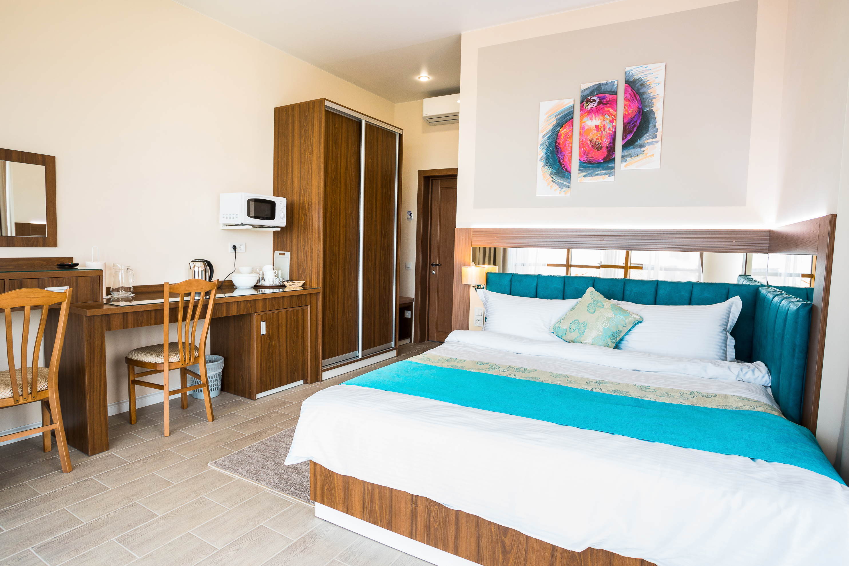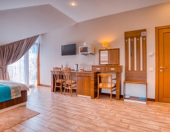 В поместье 18 комфортабельных номеров, оборудованных санузлами, телевизорами, холодильниками, сейфами, кондиционерами, теплыми полами.