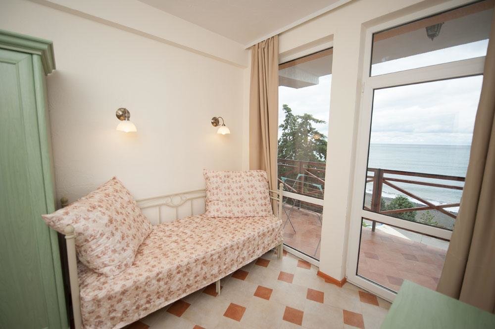 Считаю данное место подходящим для спокойного отдыха, вдали от суеты и городского шума. Брали апартаменты с видом на море. В номере имеется телевизор, холодильник, отличный санузел и конечно же, кондиционер.