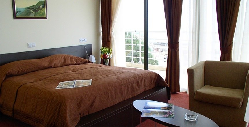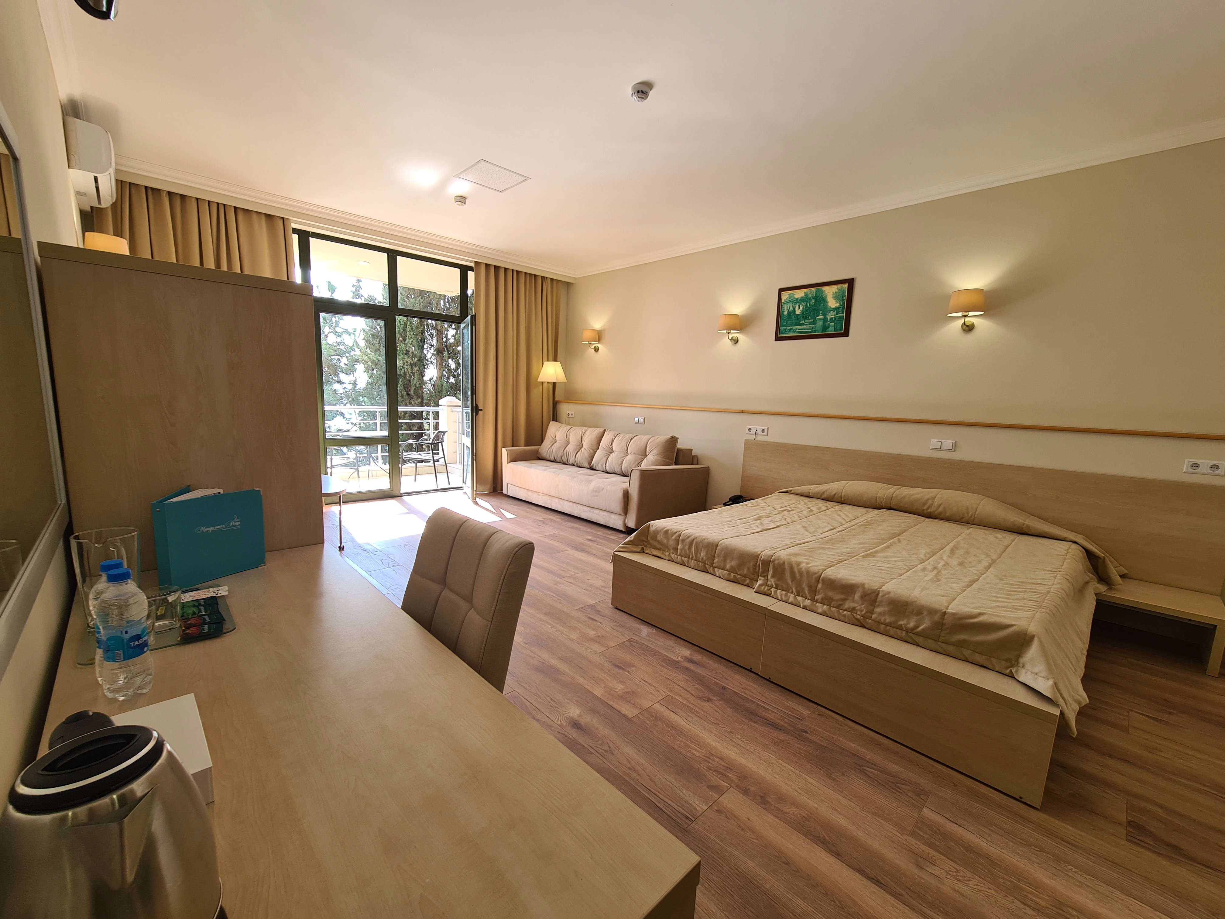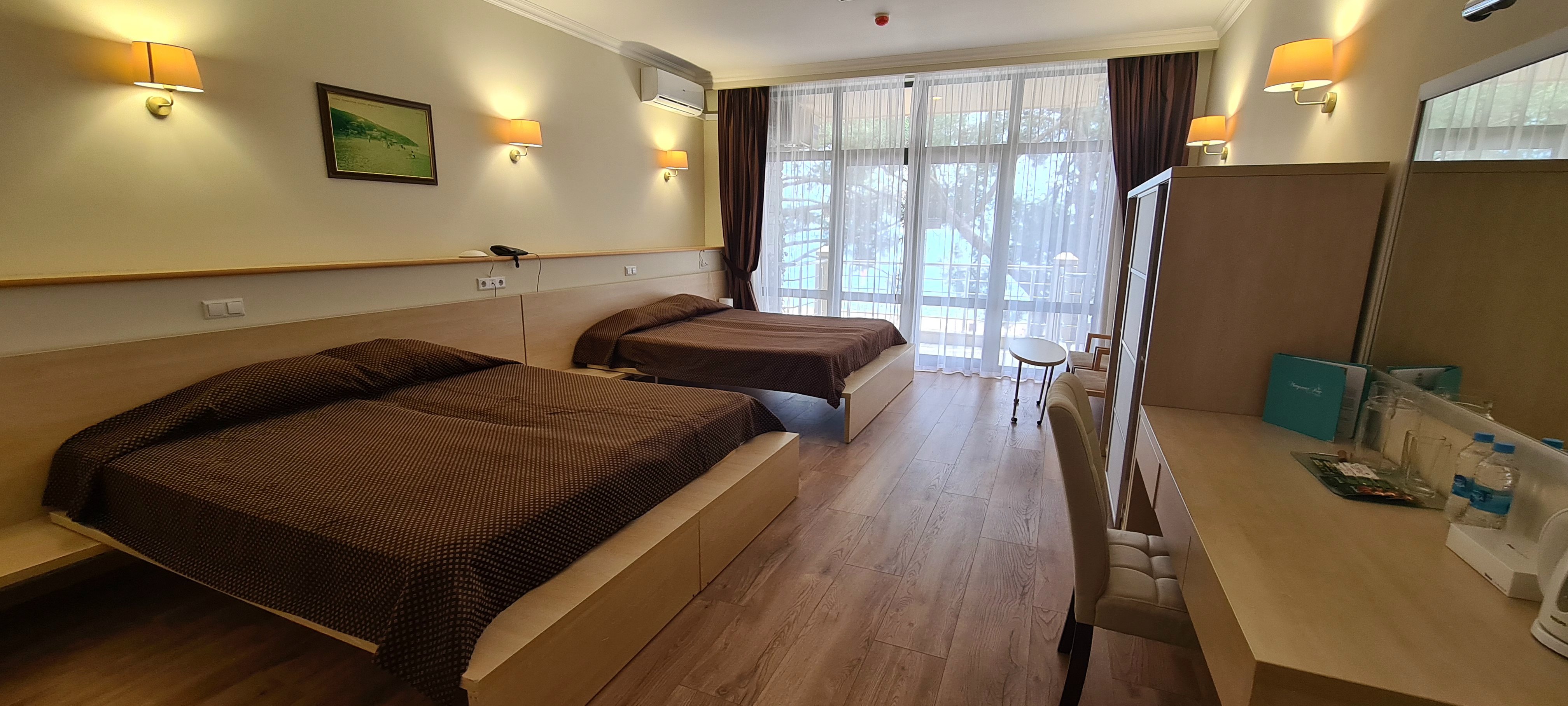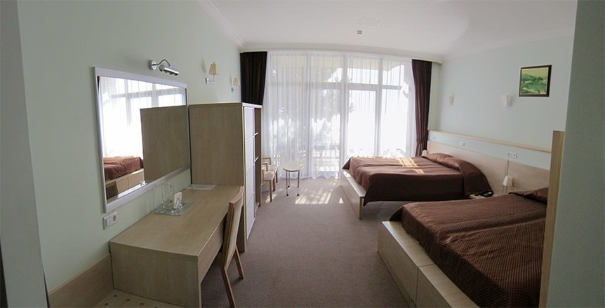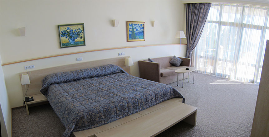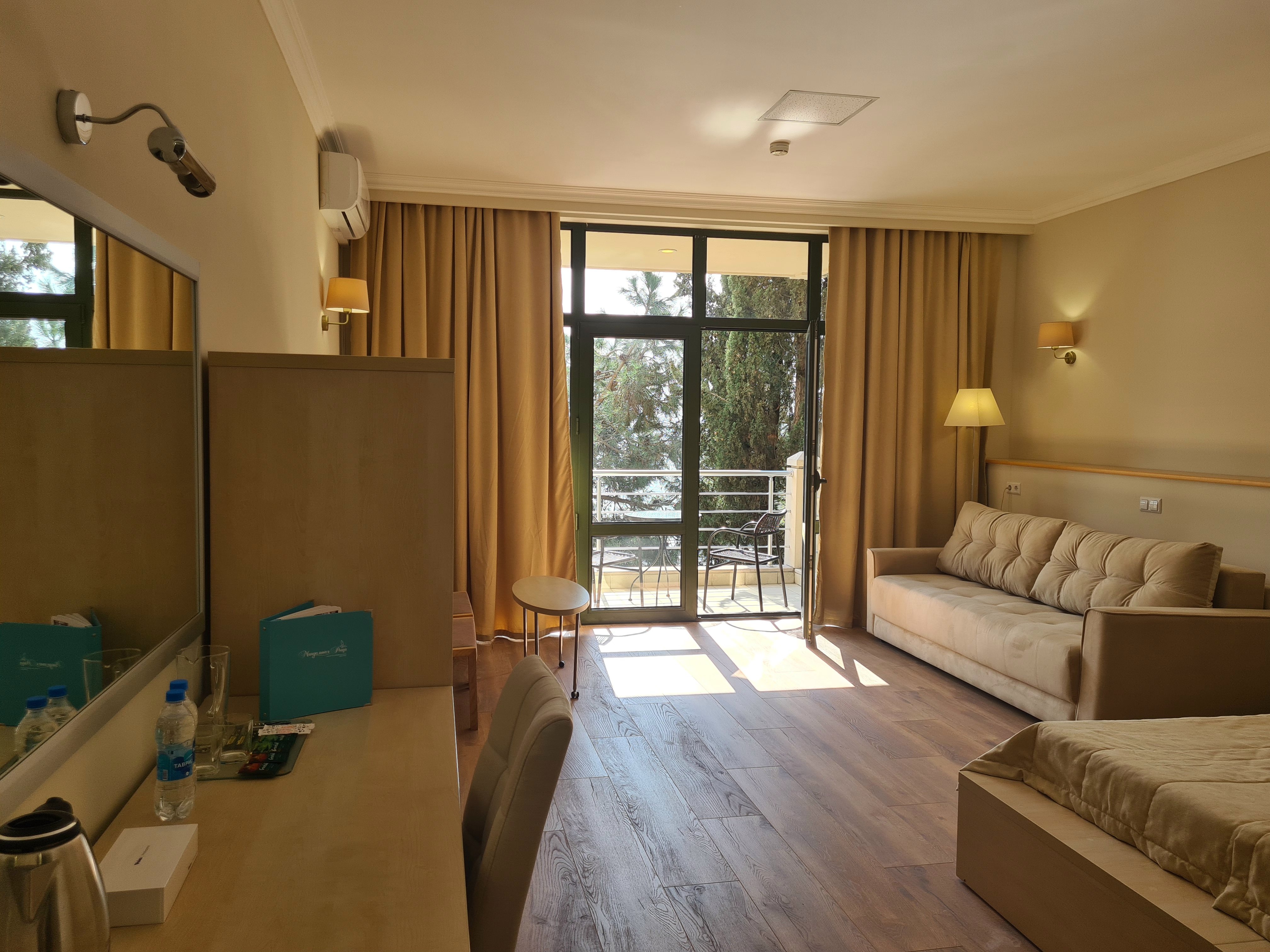 На удивление, есть в Крыму комфортабельные современные отели с достойным сервисом. Остановились с семьёй именно в нём по причине наличия аквапарка. Сервис приятно порадовал. Персонал приветливый, отзывчивый, я даже был удивлён, где научились? Я бы и в следующий раз выбрал это заведение.