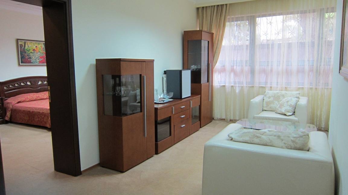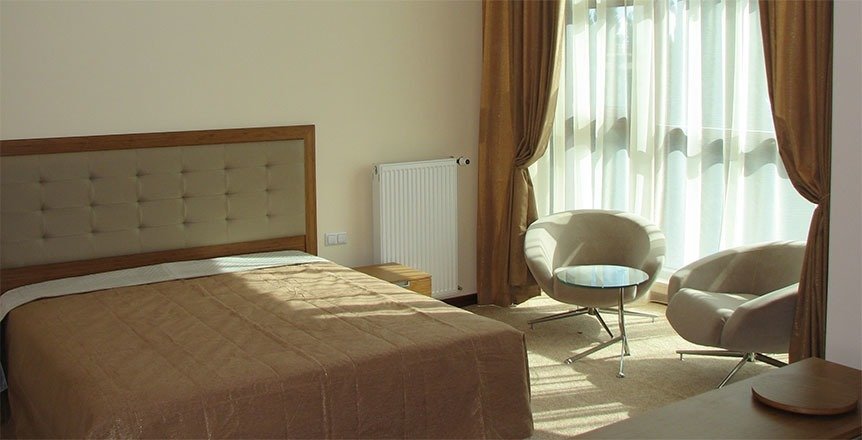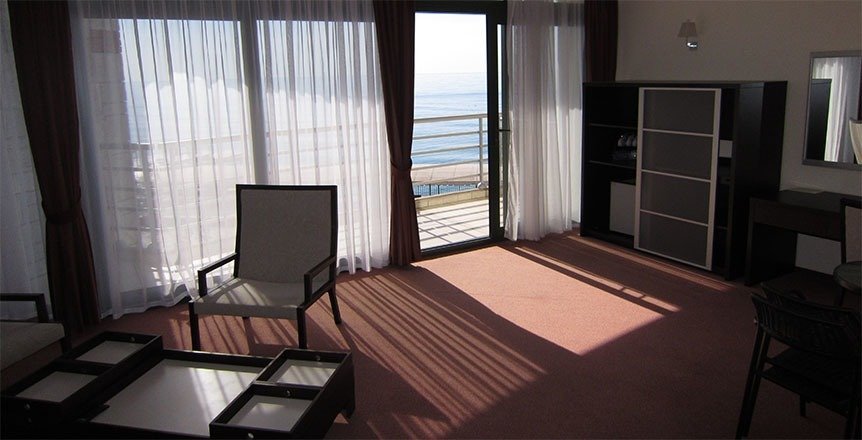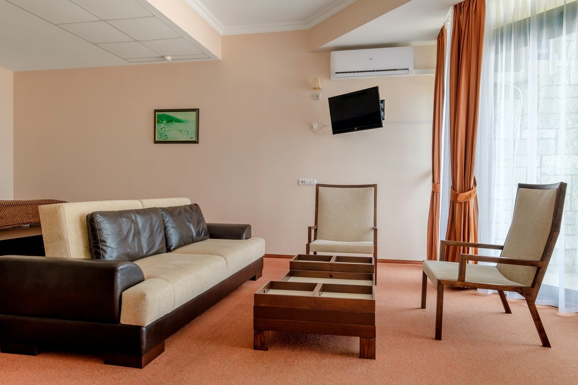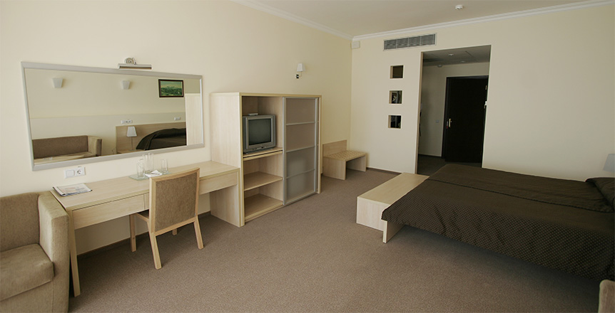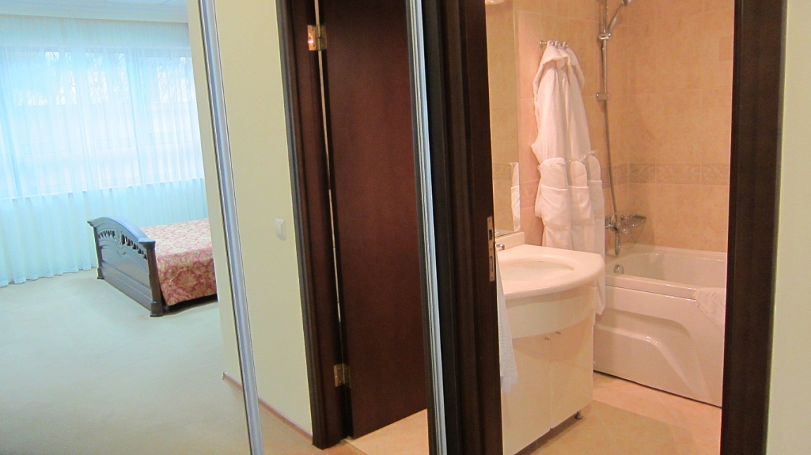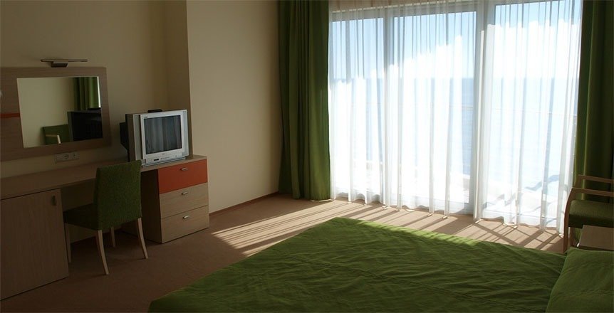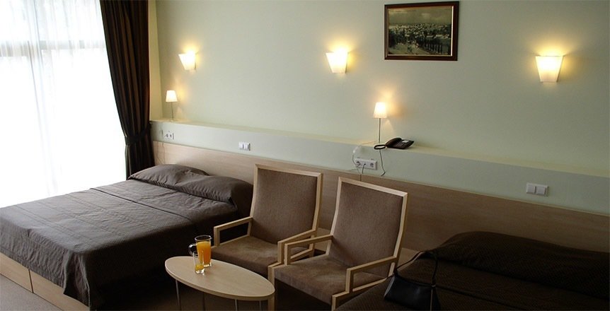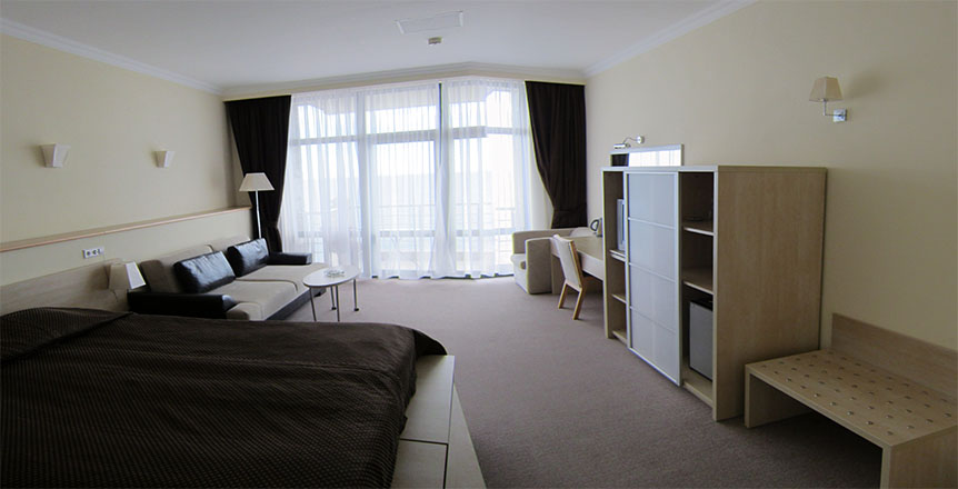 На удивление, есть в Крыму комфортабельные современные отели с достойным сервисом. Остановились с семьёй именно в нём по причине наличия аквапарка. Сервис приятно порадовал. Персонал приветливый, отзывчивый, я даже был удивлён, где научились? Я бы и в следующий раз выбрал это заведение.