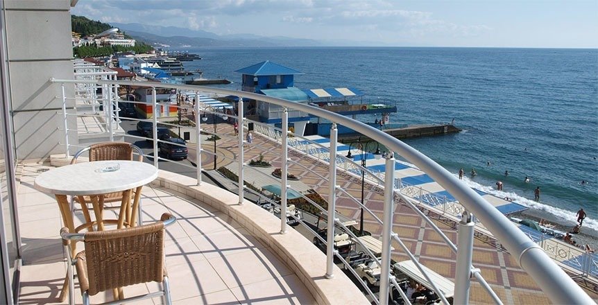 Расположение: Первая линия у моря (30 м до пляжа), 500 м до центра Алушты, 60 км до аэропорта Симферополь