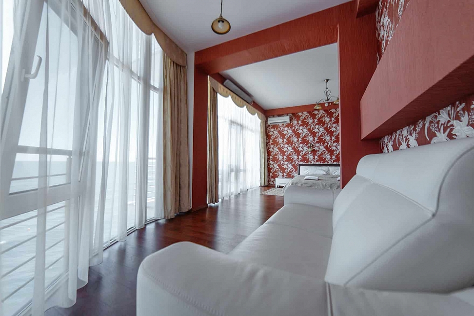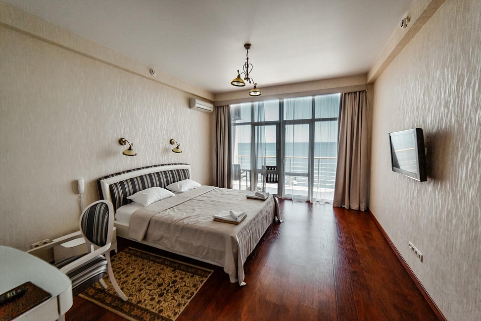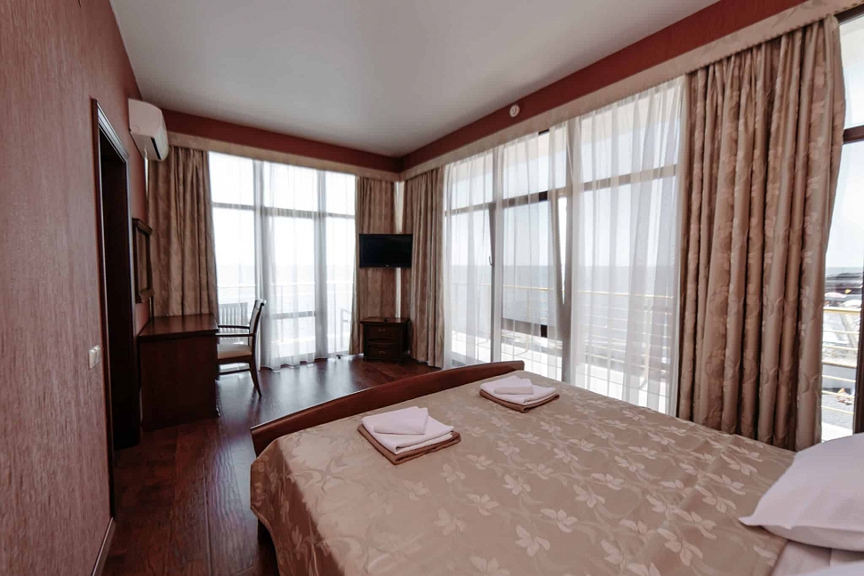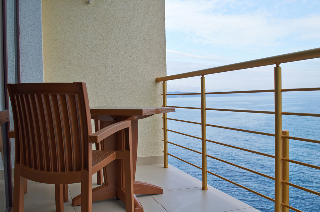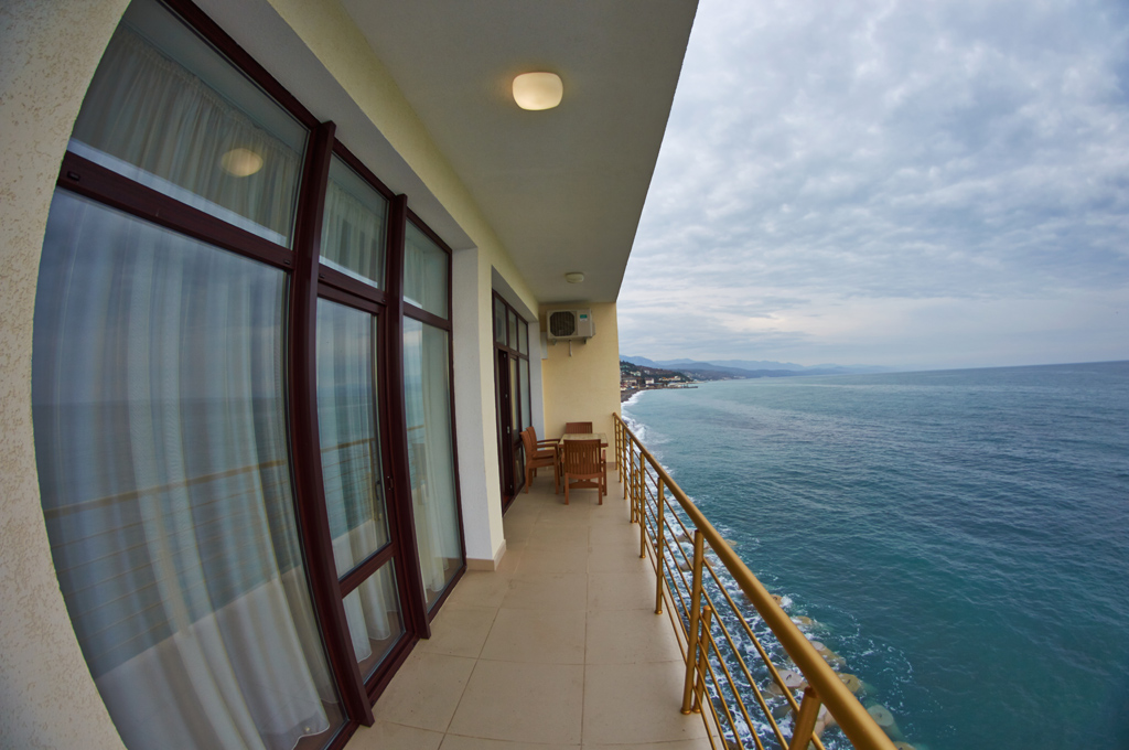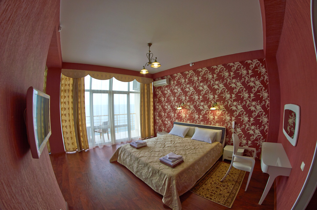 Хороший отель! Вид классный, вечером на балконе фрукты и вино, романтика! Нет детей что не в каждом отеле поэтому тишина и спокойствие, кому нужен шум и кураж такси и через 5 минут центр Алушты.