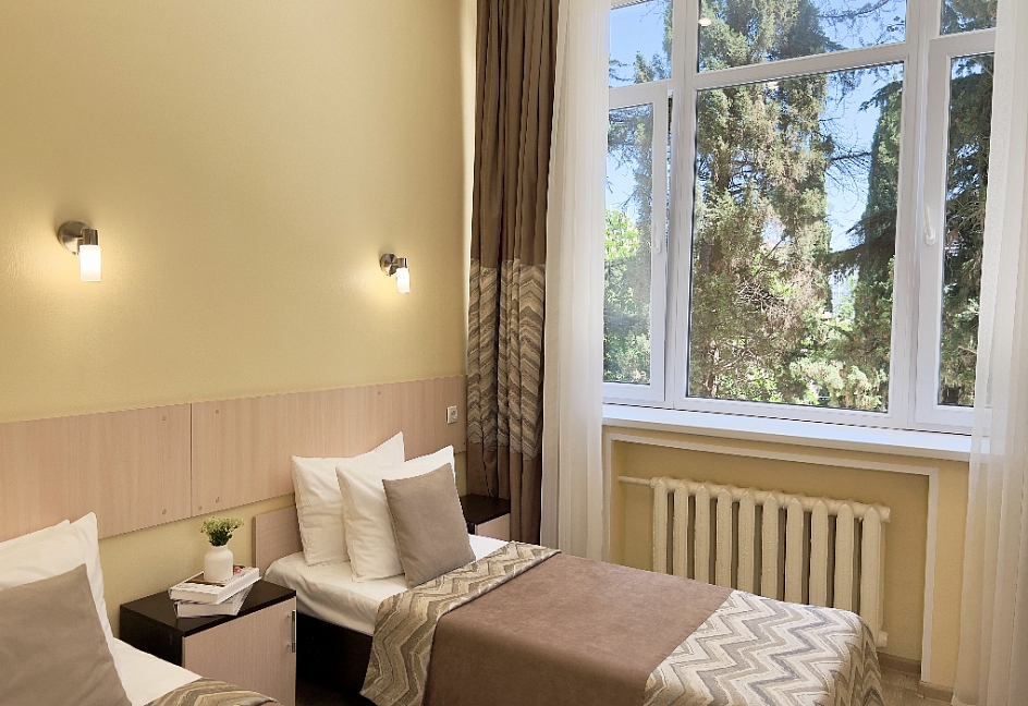 Отдыхала и лечилась в данном санатории в марте 2023г. Заселили в 1-комнатный номер с 2-мя женщинами. Хорошо. что я приехала отдельно от всей социальной группы.