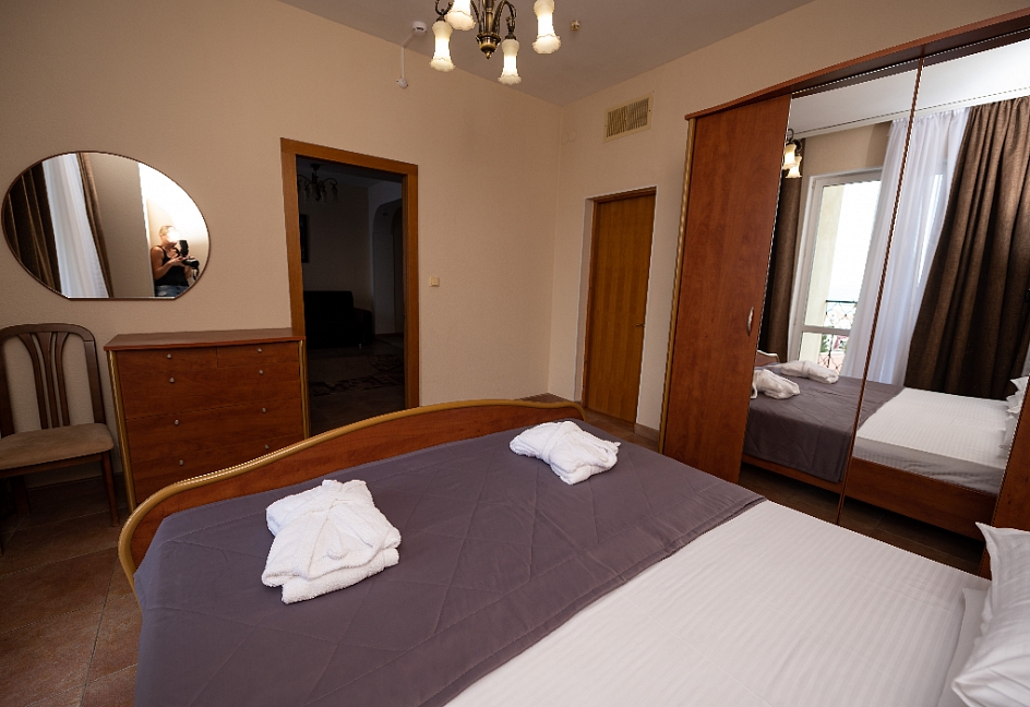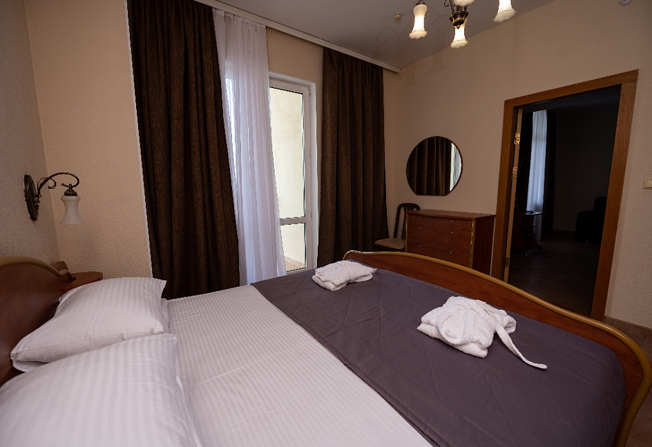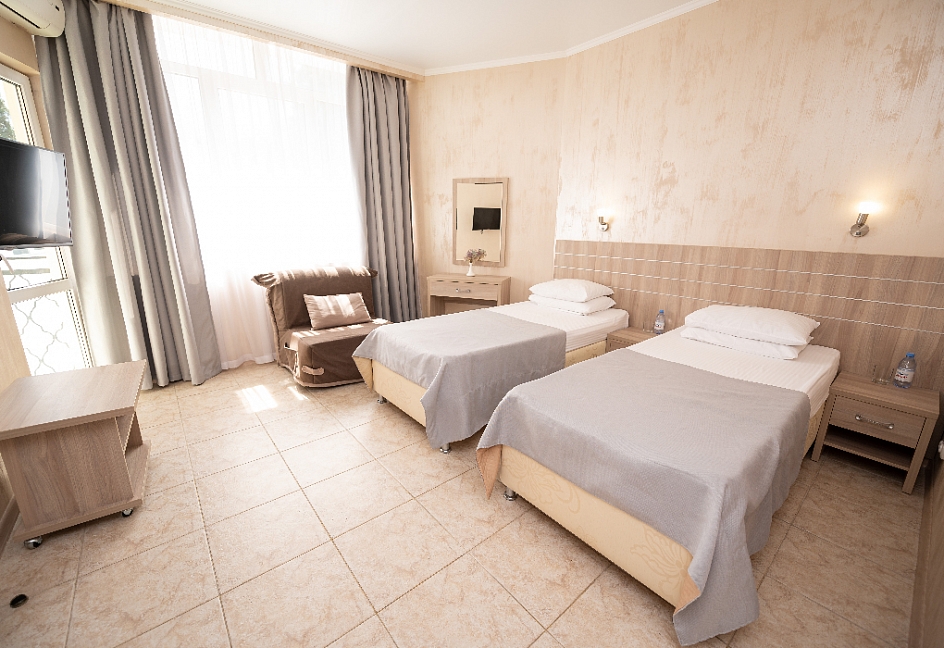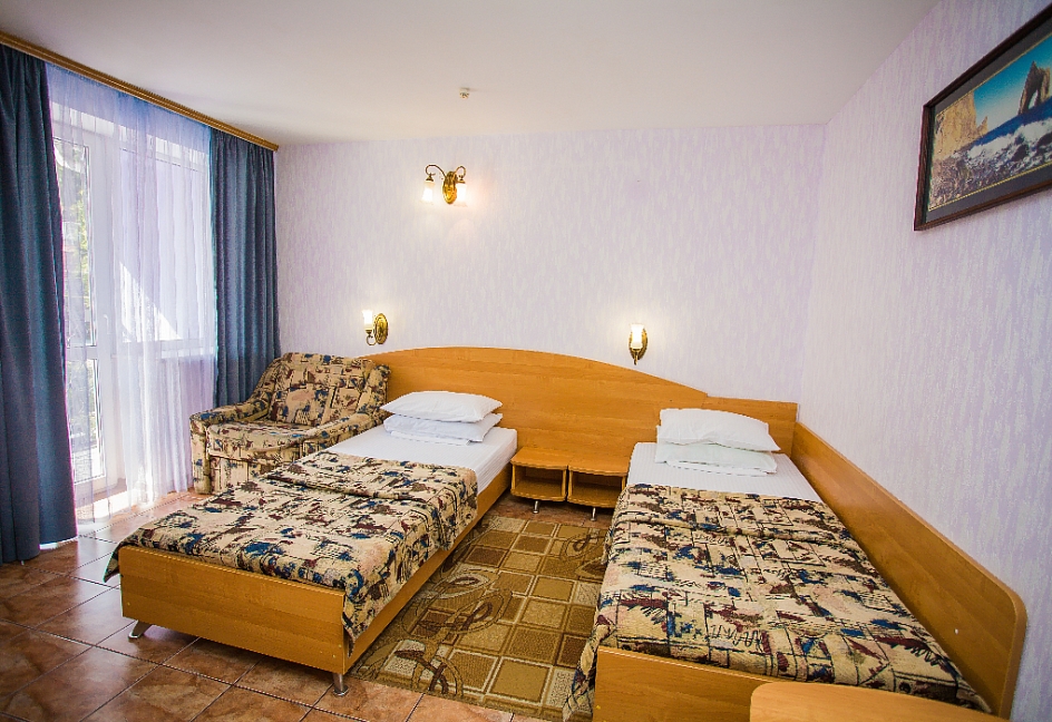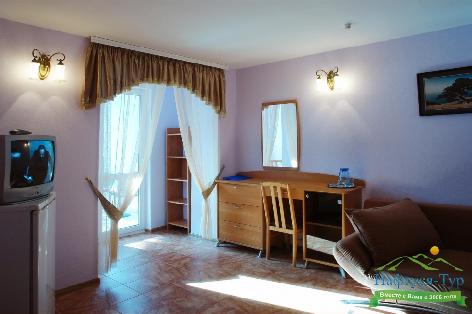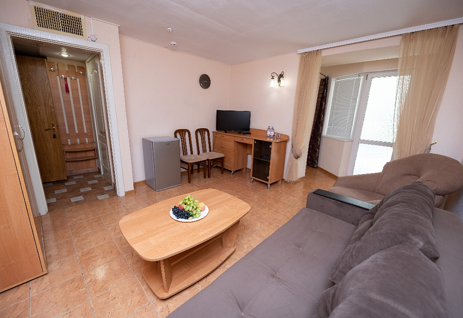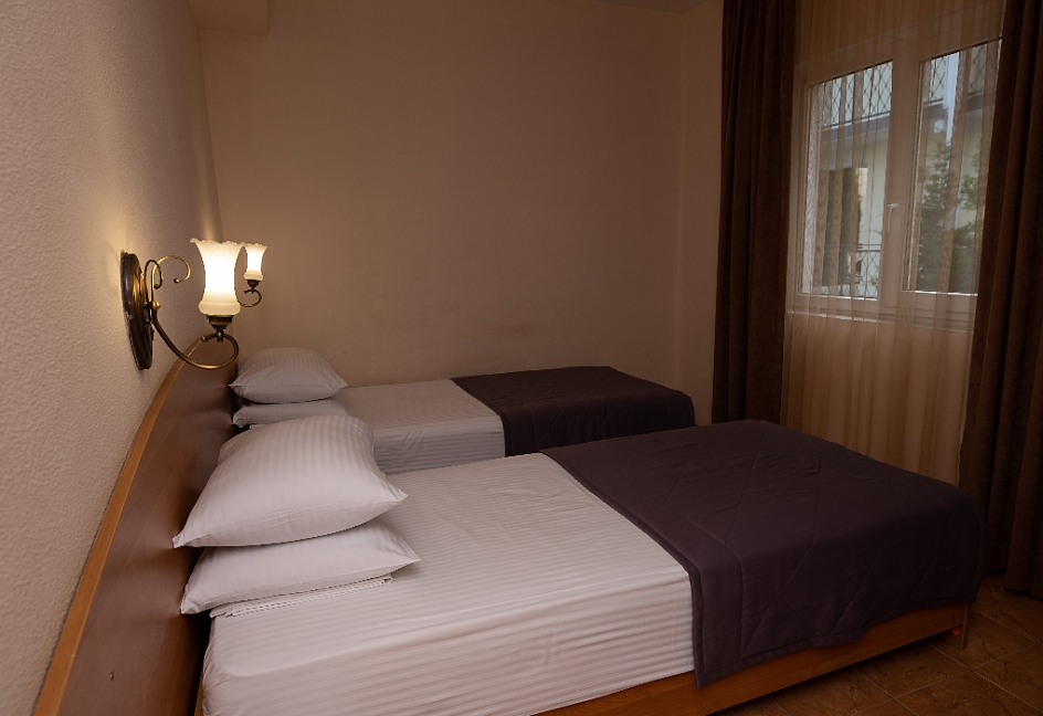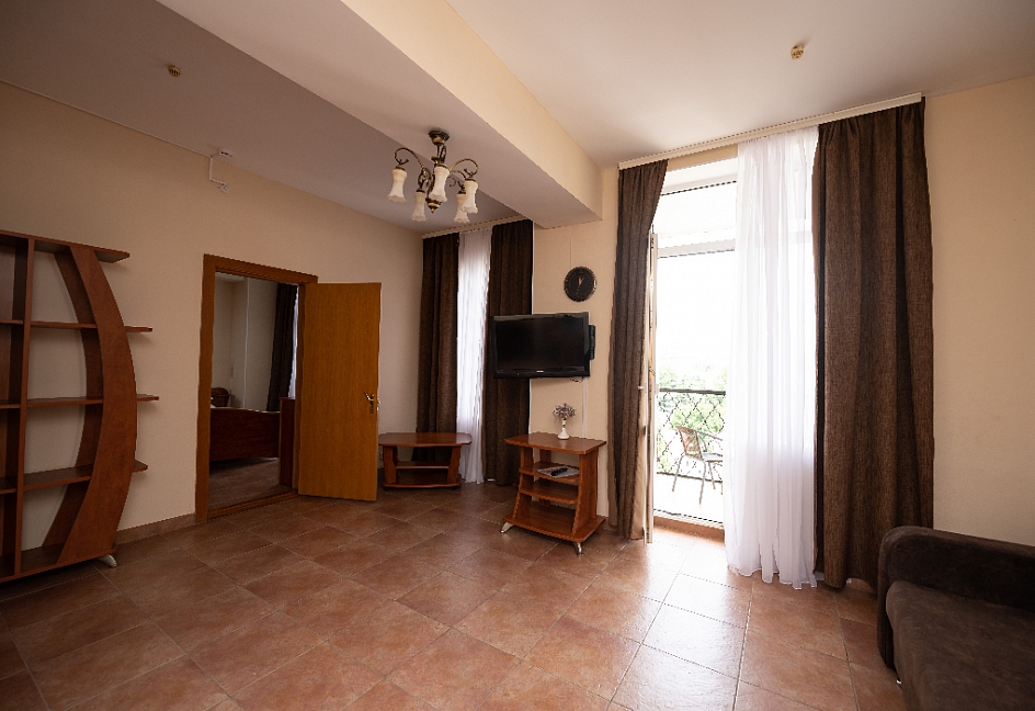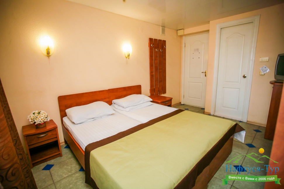 Мы были в этом пансионате с 2.01 по 9.01. 2016г. Первое впечатление, нас встретил администратор с фингалами и разбитым носом, поэтому с двумя тампонами в носу. Полулюкс из двух комнат это вообще нечто, хочешь посмотреть вечером телевизор сиди на замызганном диванчике, хочешь переодеться в коридор. Отопление только через кондиционер (а если учесть обстановку с электричеством "веерное отключение" в любое время отключается и на неопределенный срок), а также вырубается горячая вода. Бассейн с подогревом (специально выбирали) 23 градуса температура воды, раздевалки убогие нет ни зеркала, ни фена. В номере тоже нет фена, собираешься мыть голову иди проси у администратора. В общем все на уровне 80-х. А столовая отдельная песня, обслуживающий персонал накладывает себе и принимает пищу вместе с проживающими (только на кухне), поэтому на замечание что нет чашек ( блюдец мы так ни разу и не увидели)отвечали мол мы не виноваты что некоторые выпивают по несколько чашек ( хотя из посетителей было меньше десятка). На завтрак даже к кофе не могли поставить молока, машина еще не приехала. Если бы мы приехали своим транспортом, то уехали бы раньше как многие делали. Понятно проблемы со светом не их вина, но внимание и забота, они сидят и ждут что к ним все поедут и будут рады такому сервису( в принципе я человек не избалованный, но хотелось бы за свои деньги получить элементарные услуги - чай черный или зеленый на выбор, молоко к кофе, одеяло заправленное в пододеяльник, тепло, фен в полулюксе, телевизор посмотреть лежа и т. д.) . Администрация хотя бы принесла извинения за не полностью оказанный пакет услуг.