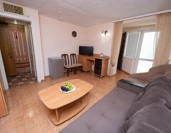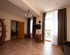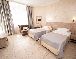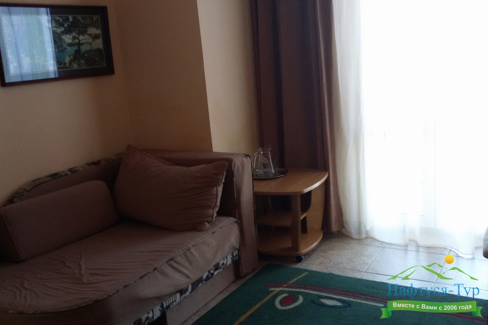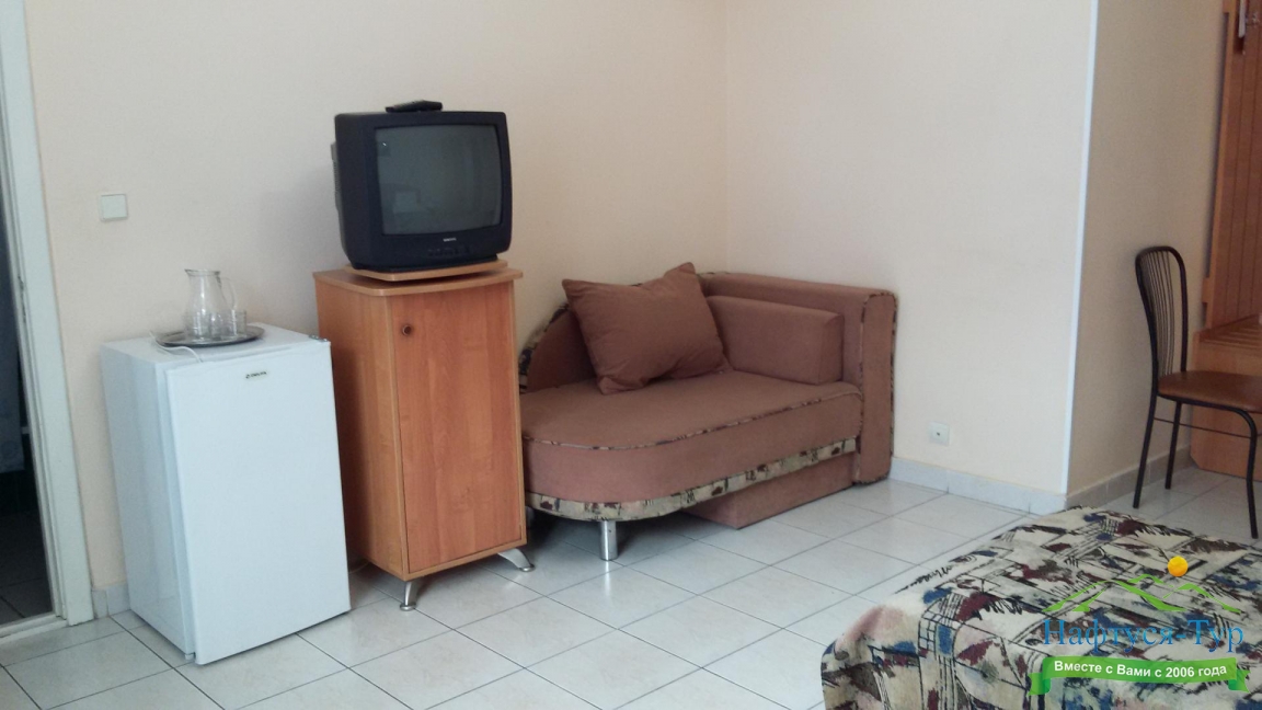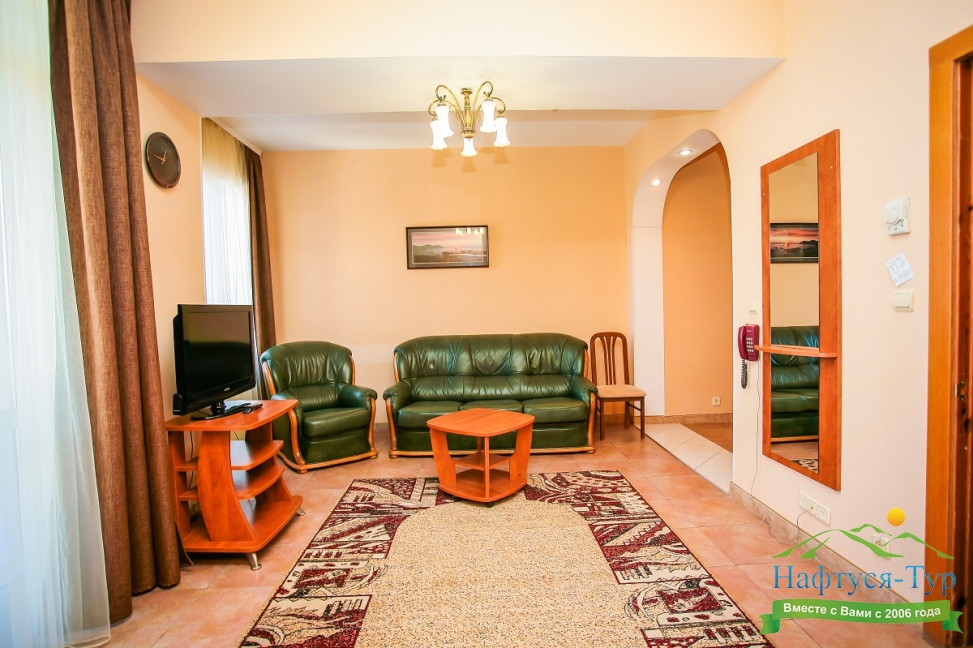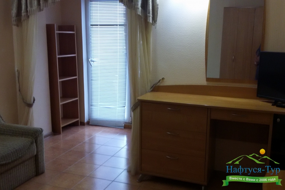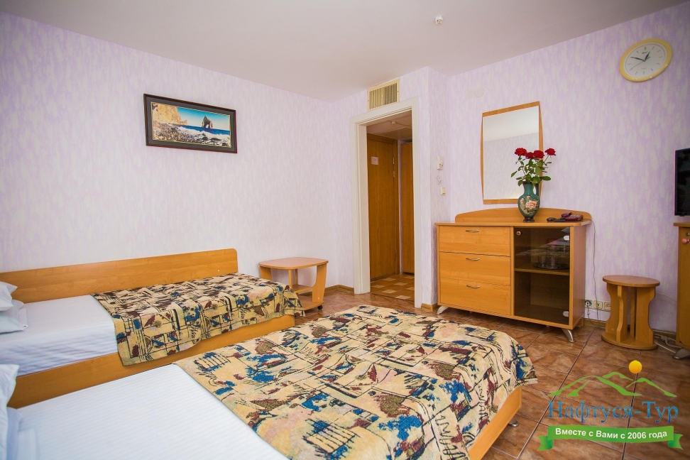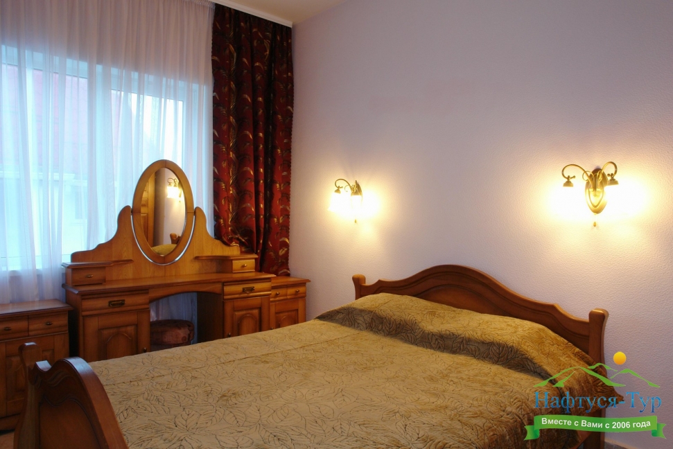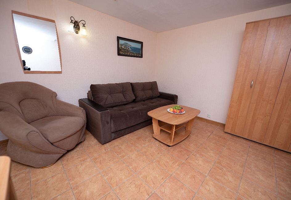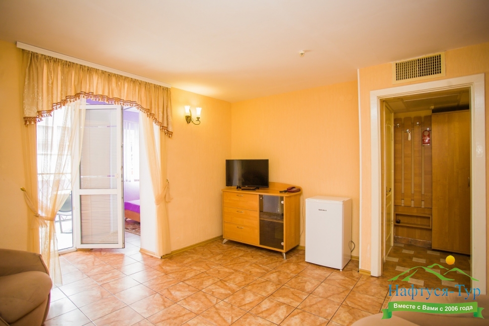 Мы были в этом пансионате с 2.01 по 9.01. 2016г. Первое впечатление, нас встретил администратор с фингалами и разбитым носом, поэтому с двумя тампонами в носу. Полулюкс из двух комнат это вообще нечто, хочешь посмотреть вечером телевизор сиди на замызганном диванчике, хочешь переодеться в коридор. Отопление только через кондиционер (а если учесть обстановку с электричеством "веерное отключение" в любое время отключается и на неопределенный срок), а также вырубается горячая вода. Бассейн с подогревом (специально выбирали) 23 градуса температура воды, раздевалки убогие нет ни зеркала, ни фена. В номере тоже нет фена, собираешься мыть голову иди проси у администратора. В общем все на уровне 80-х. А столовая отдельная песня, обслуживающий персонал накладывает себе и принимает пищу вместе с проживающими (только на кухне), поэтому на замечание что нет чашек ( блюдец мы так ни разу и не увидели)отвечали мол мы не виноваты что некоторые выпивают по несколько чашек ( хотя из посетителей было меньше десятка). На завтрак даже к кофе не могли поставить молока, машина еще не приехала. Если бы мы приехали своим транспортом, то уехали бы раньше как многие делали. Понятно проблемы со светом не их вина, но внимание и забота, они сидят и ждут что к ним все поедут и будут рады такому сервису( в принципе я человек не избалованный, но хотелось бы за свои деньги получить элементарные услуги - чай черный или зеленый на выбор, молоко к кофе, одеяло заправленное в пододеяльник, тепло, фен в полулюксе, телевизор посмотреть лежа и т. д.) . Администрация хотя бы принесла извинения за не полностью оказанный пакет услуг.