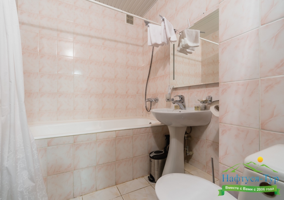биде, с ванной, тапочки, туалетные принадлежности, фен, халат