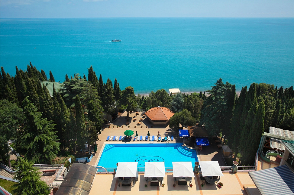 На территории отеля "Море" расположено пять открытых бассейнов и два крытых. Каждый из бассейнов неповторим.