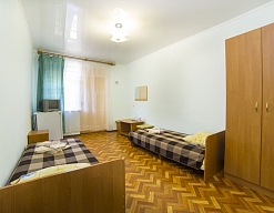 Пансионат довольно простой с обычными небольшими номерами. На территории два корпуса и отдельные домики. Остановка транспорта рядом. Нас поселили в замечательный домик. Горячая вода всегда была в наличии, в комнате 3 кровати, санузел с душевой кабинкой.