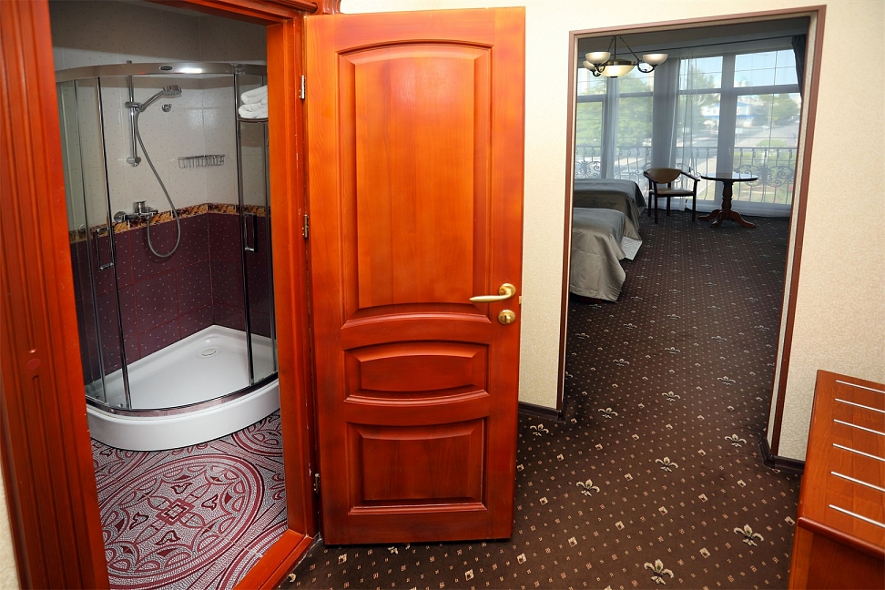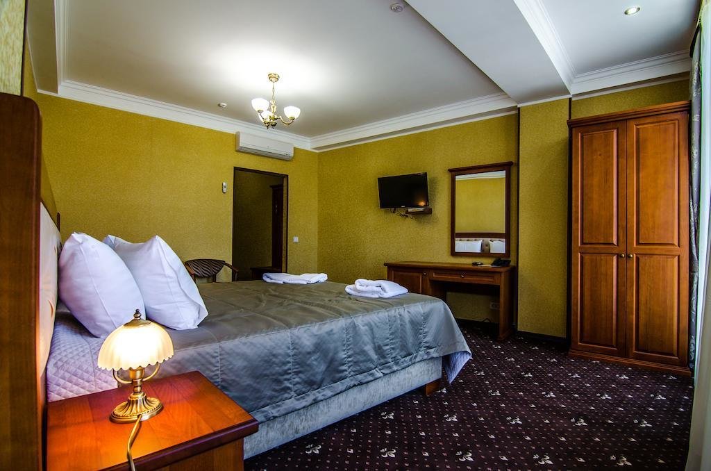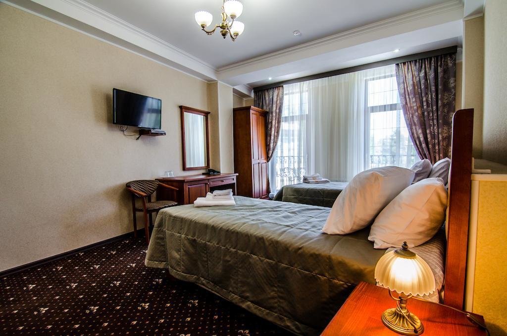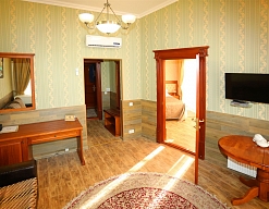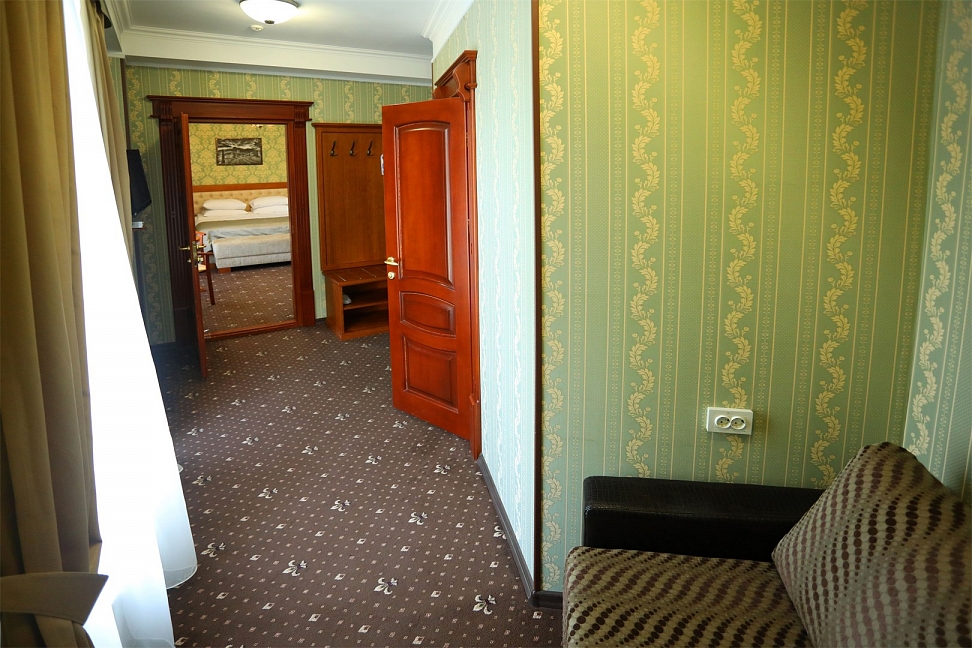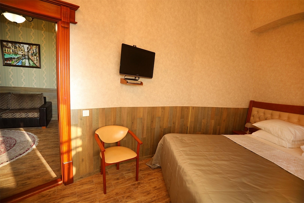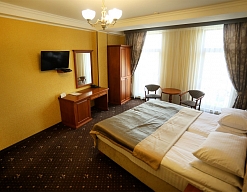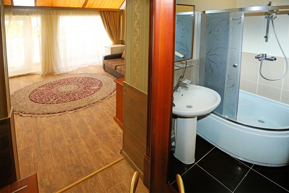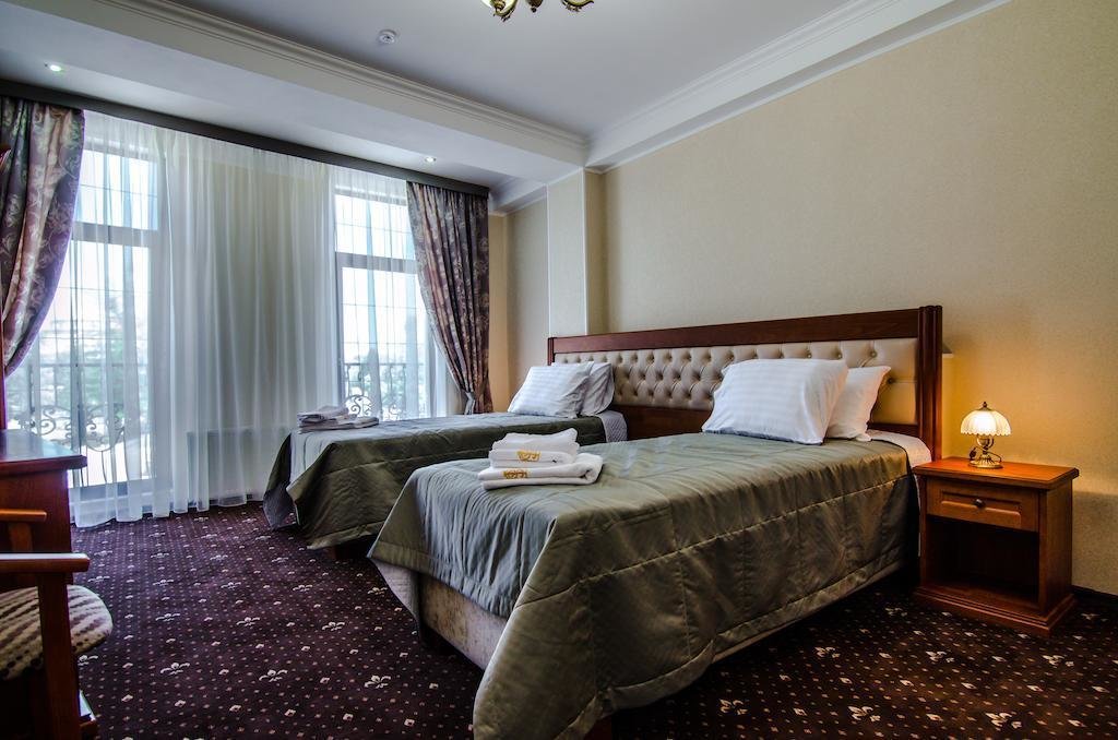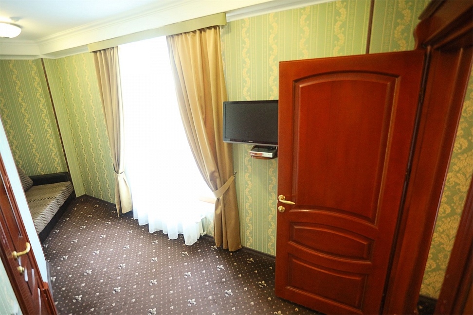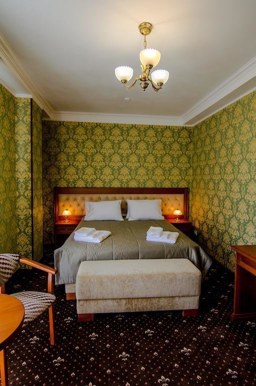 Небольшой, почти семейный, свежеотремонтированный отель, расположенный в здании с богатой историей. Для себя я выделил только два минуса, и то, не принципиальных. Отель находится на окраине Евпатории и в нём нет лифта (в силу исторической особенности постройки и малоэтажности).
