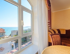 Расположение: Первая линия у моря (150 м до пляжа), 100 м до центра, 140 км до аэропорта Симферополь