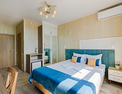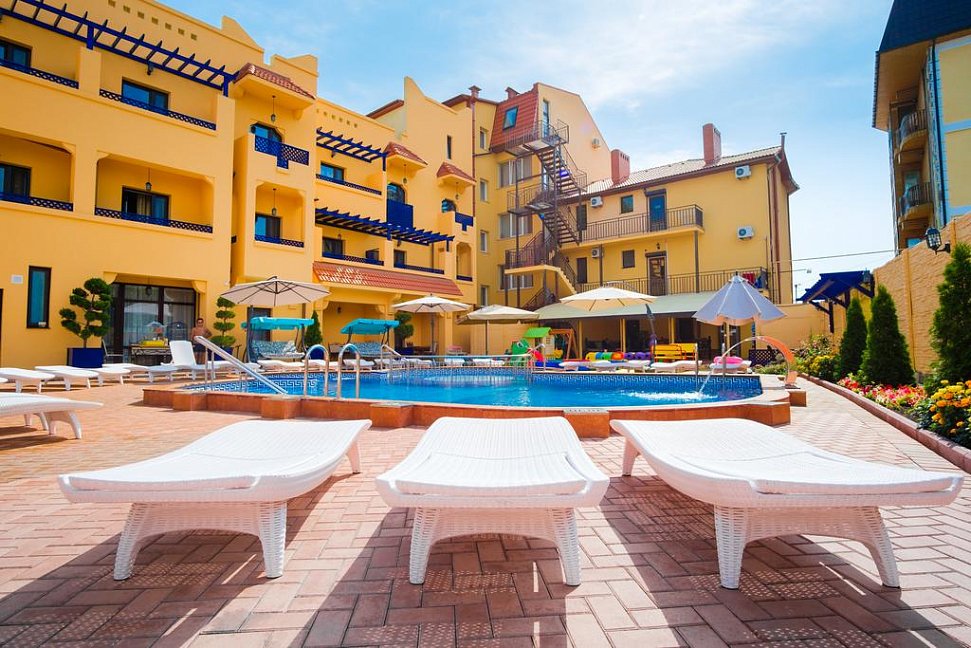 Отдыхали в отеле “На-Черноморской” семьей с 2 детьми (5 и 14 лет) с 20 июня по 10 июля 2018г. Специально выбирали отель на первой линии вдоль полосы мелкоракушечного пляжа с прозрачным морем, в который влюбились ранее, и выбор пал на этот отель еще из-за собственного бассейна, что здесь редкость.