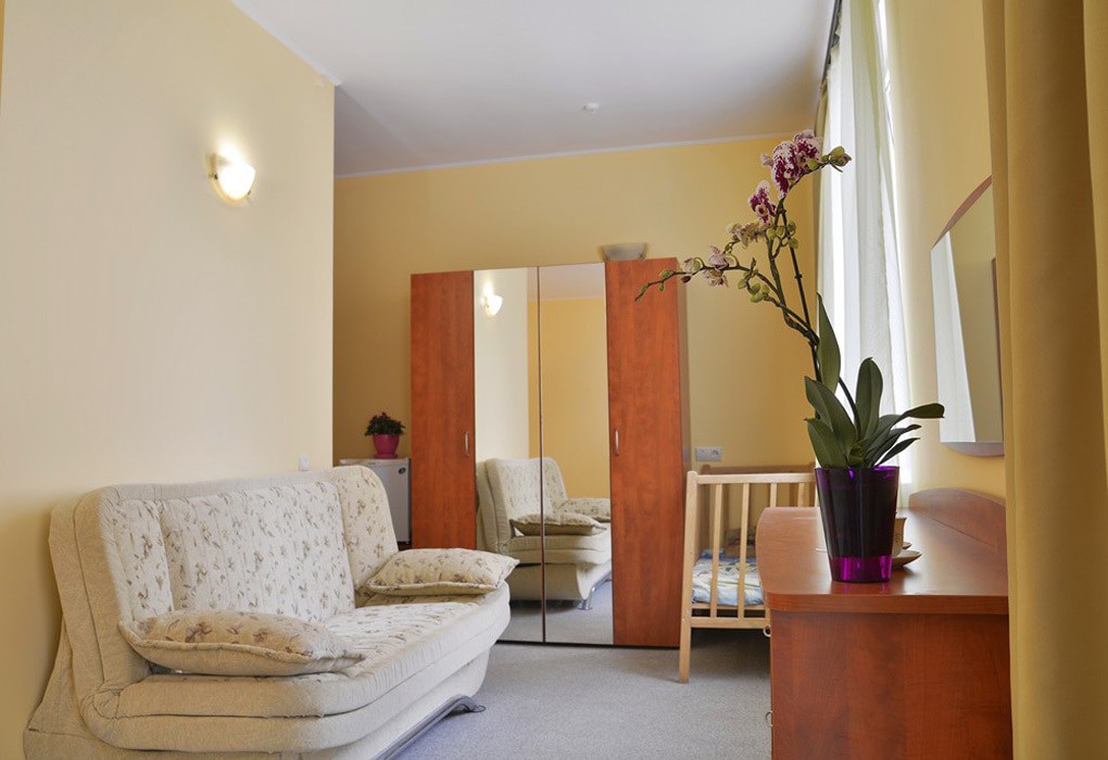 Детям до 3 лет предоставляется детская кроватка (по запросу). Дети до 7 лет принимаются без места и питания бесплатно при условиии бронирования 2 основных мест в номере.