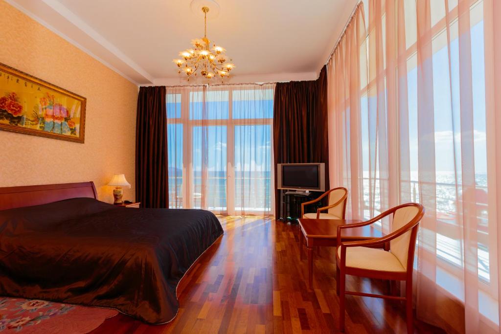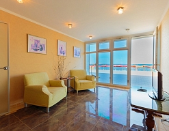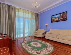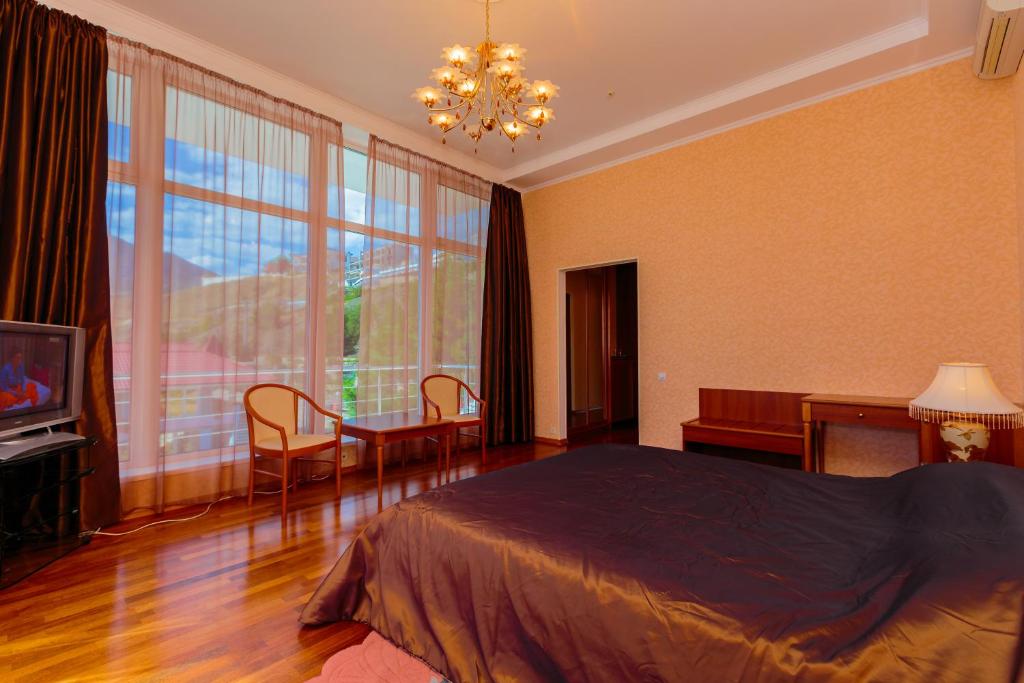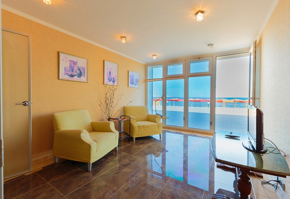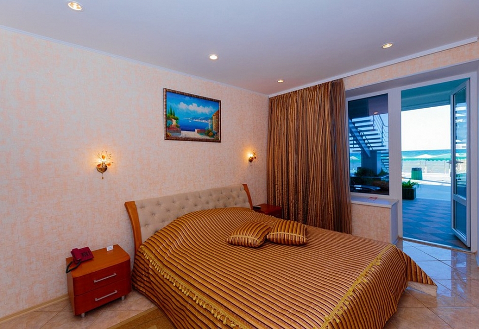 Понравилось всё. От встречи в аэропорту Симферополя до обратного трансфера, заботливо организованного отелем. Ненавязчивый сервис на достаточно высоком уровне. Отличное питание в ресторане. Пансион (завтрак 400 руб, обед-600 руб, ужин -400 руб) примерно 2-3 блюда на выбор (и первое, и второе). Возможно питание по меню, но цены несколько завышены, хотя качество достойное. Состояние номера (мебель и ремонт) на 4 по 5-бальной шкале. На ресепшн в сезон можно приобрести тематические экскурсии по полуострову, ознакомившись с подробным каталогом. В отеле расположен Центр дайвинга, который может обеспечить надводные и подводные развлечения. Но самое главное преимущество отеля- близость к морю (30 шагов), собственный благоустроенный мальтийский пляж и необыкновенный вид из панорамных окон. Налево - гора Хамелеон, направо-"Кара-Даг"; прямо - бескрайнее море (несколько раз видел дельфинов). Одним словом, если в Коктебель, то в Грифон.