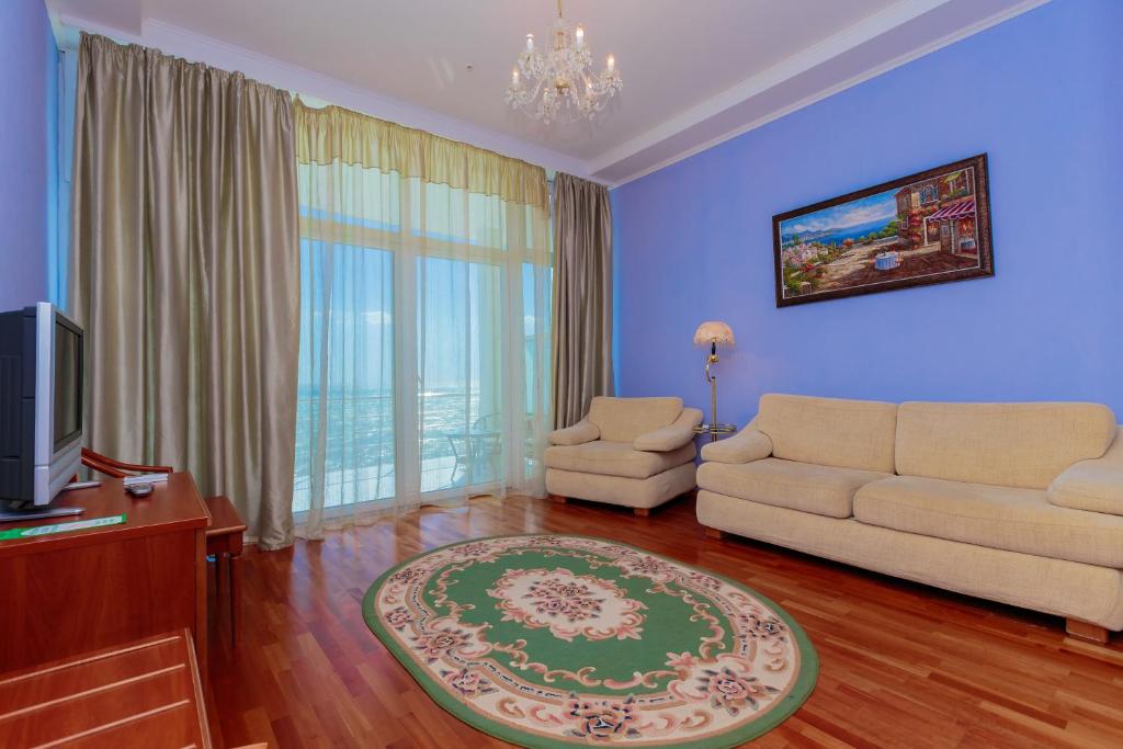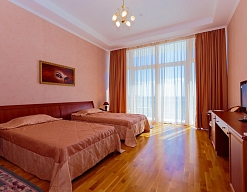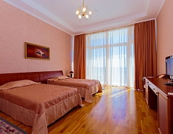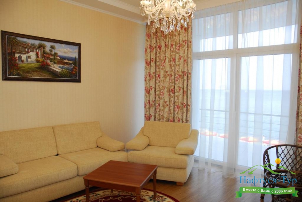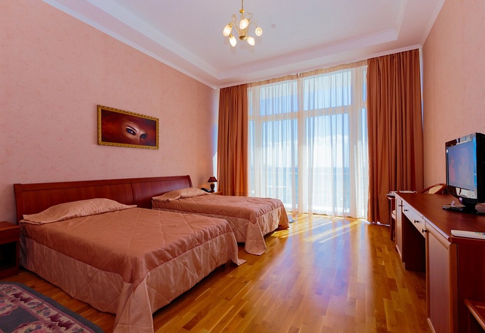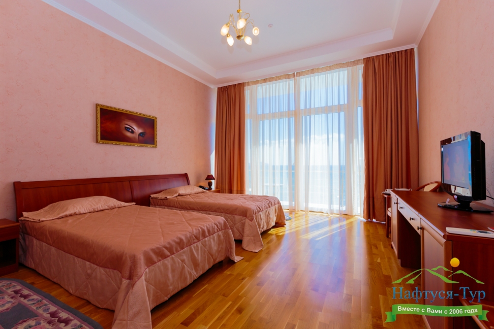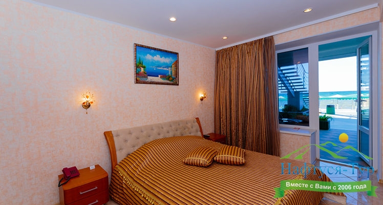 Были с мужем в этом отеле в середине августа. Удобно, что отель находить вдалеке от набережной. поэтому музыка из ресторанов не слышна. Жили в номере на 3-м этаже с прямым видом на море.