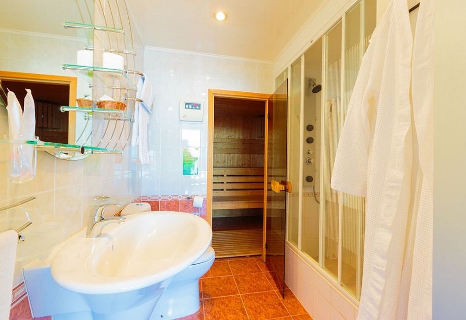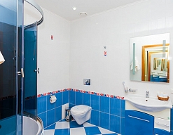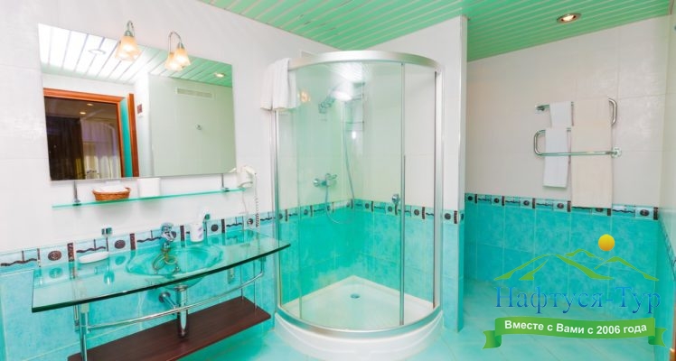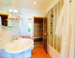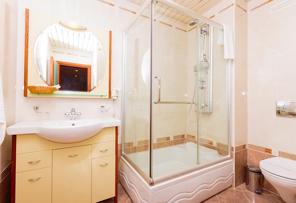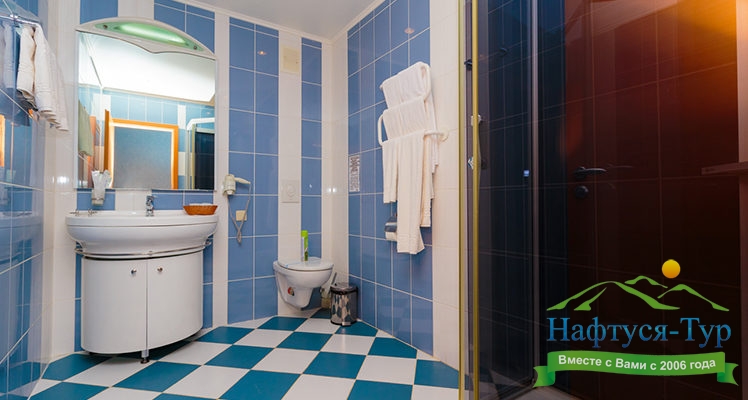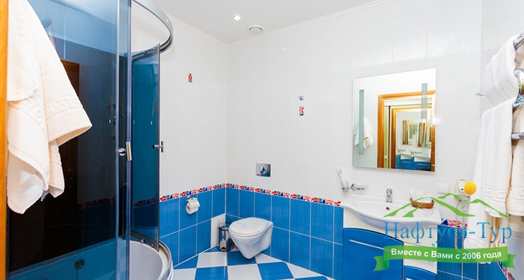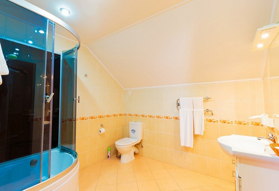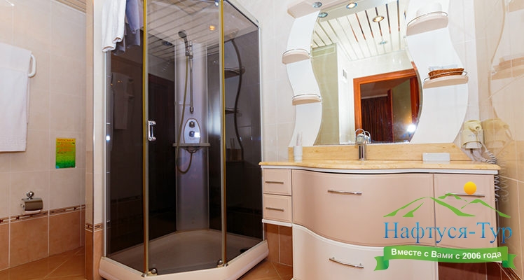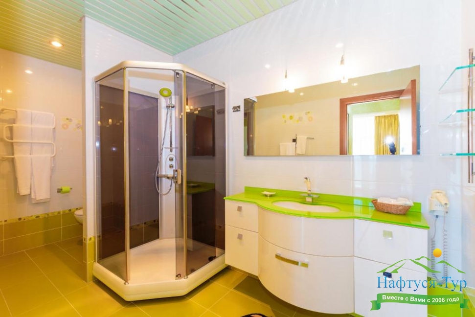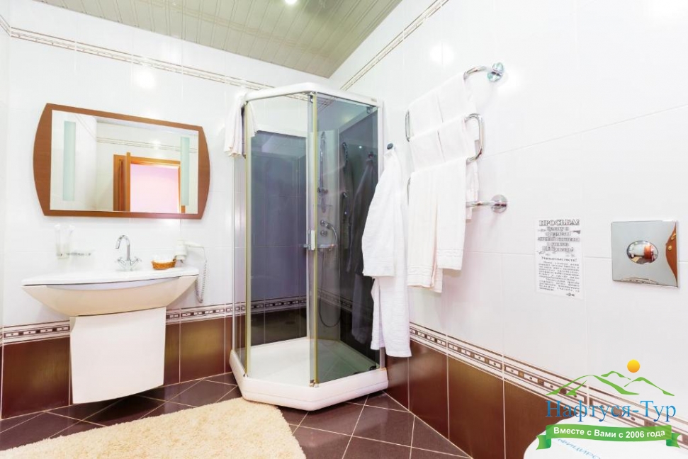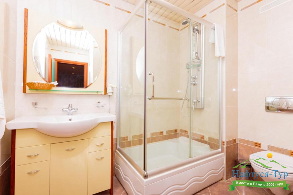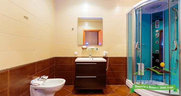 2 санузла, с душевой кабиной, тапочки, туалетные принадлежности, фен, халат