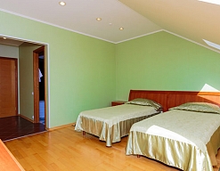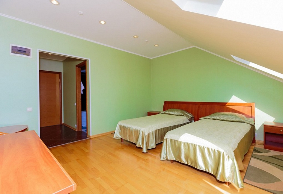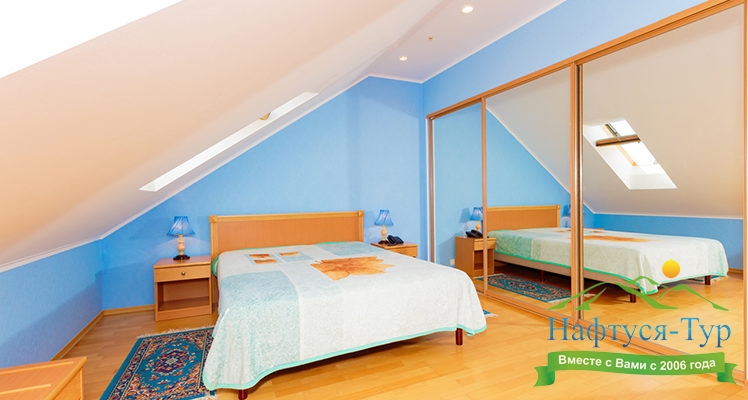 зеркало, кровати односпальные /одна двуспальная кровать, прикроватные тумбочки, стол, стулья, тумба багажная, шкаф
