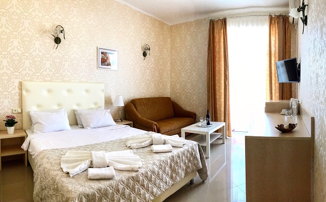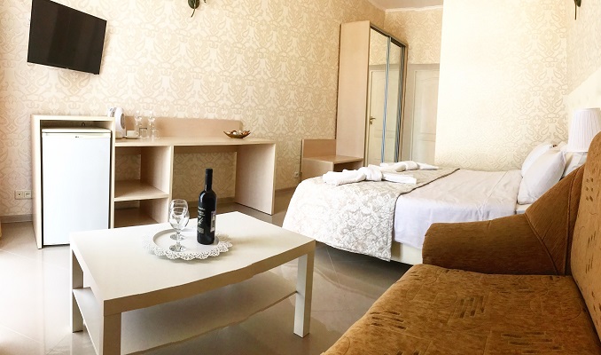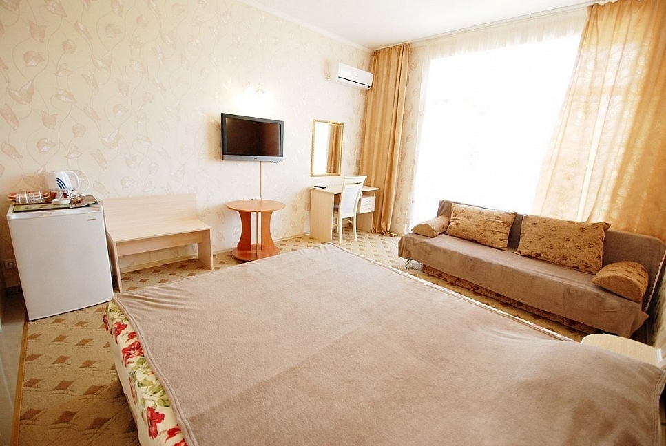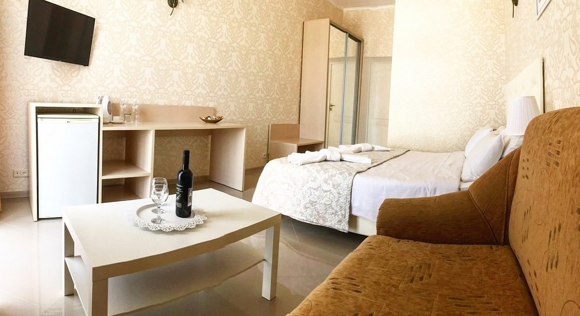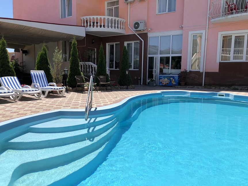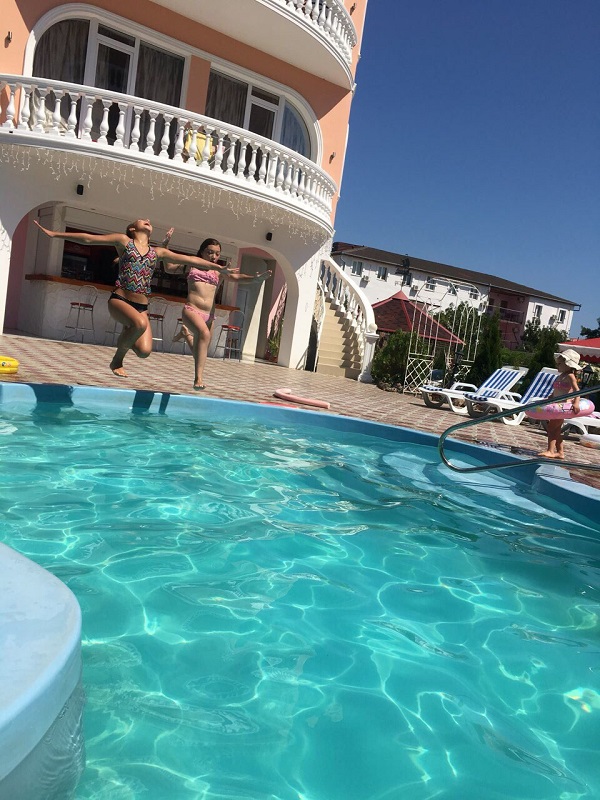 Останавливались на вилле всего на три дня. За это время не было никаких претензий ни к персоналу, ни к отелю в общем. У виллы прекрасный двор, хорошие завтраки и ужины. Вид из номера на бассейн и бар. Справа можно увидеть красивые горы, слева открывается вид на море. Здесь демократичные цены. Очень прекрасное обслуживание. Персонал заботится о своих гостях и делает всё от него зависящие. Удобно добираться до моря, совсем недалеко. Есть небольшой ресторанчик-столовая, готовят достаточно вкусно и разнообразно. Уборка ежедневная, смена белья каждые 3 дня. Есть отличная детская площадка, вечером работает аниматор. Отель расположен в тихом месте, но в то же время до всей инфраструктуры посёлка и до развлечений очень близко. Сам отель и его хозяева оставили самые тёплые воспоминания и положительные впечатления. Здесь уютно и комфортно, недорого, хорошая атмосфера. Обязательно приедем сюда в следующем году на длительное время. Рекомендуем всем!!!