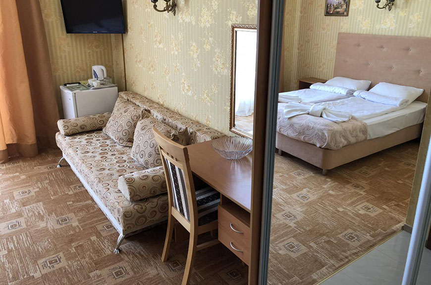 Выбрали этот отель ссылаясь на отзывы. На сайте компании "Нафтуся" нашли информацию о вилле, решили забронировать Люкс для семьи из 3-х человек. Спасибо за достоверные сведения туроператору "Нафтуся" и за отличную работу менеджеров.