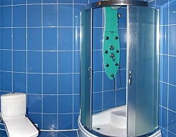 с душевой кабиной, тапочки, туалетные принадлежности, фен, халат