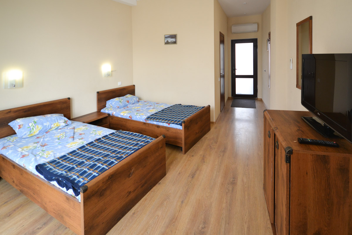 Для вашего комфортного проживания мы рады предоставить вам хорошо оборудованные 1-местные, 2-местные и 2-комнатные номера различных категорий. В номерах вы можете найти все, что вам необходимо для комфортного проживания: современная мебель, санузел, чайник, холодильник, телевизор, сейф и кондиционер. С балконов открывается незабываемый вид на море и горы. На всей территории гостиницы имеется скоростной wi-fi.