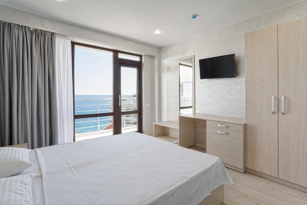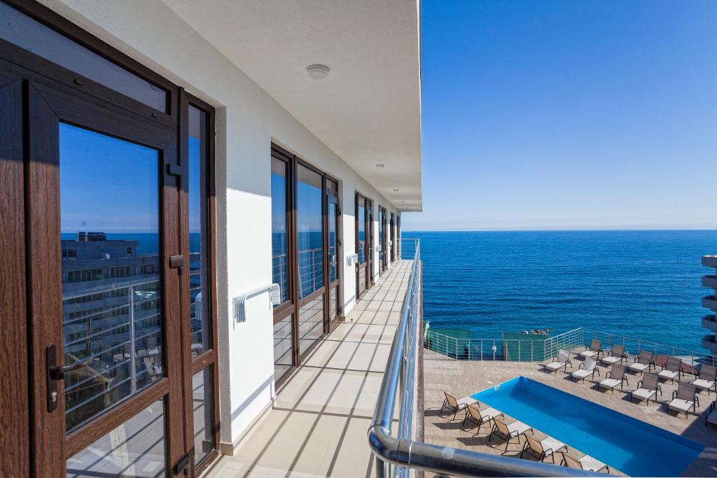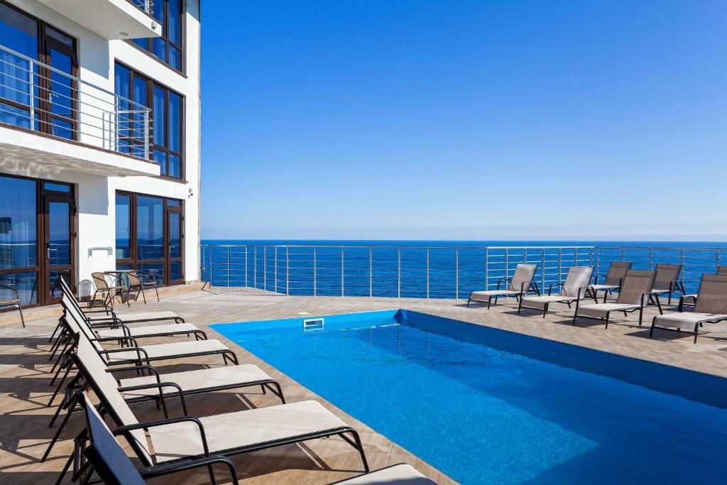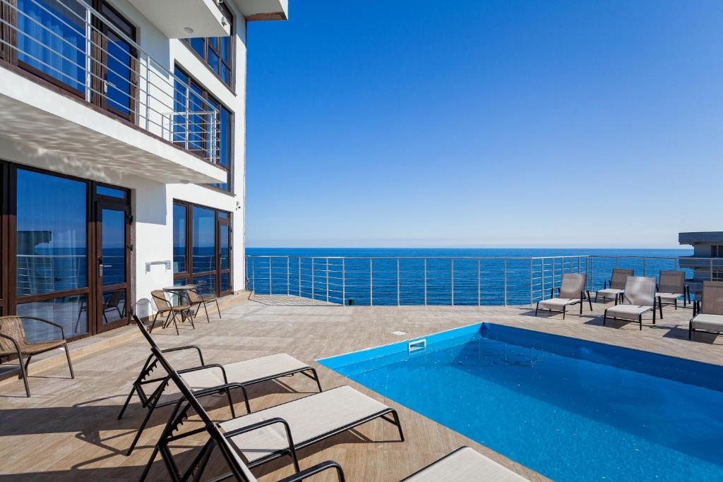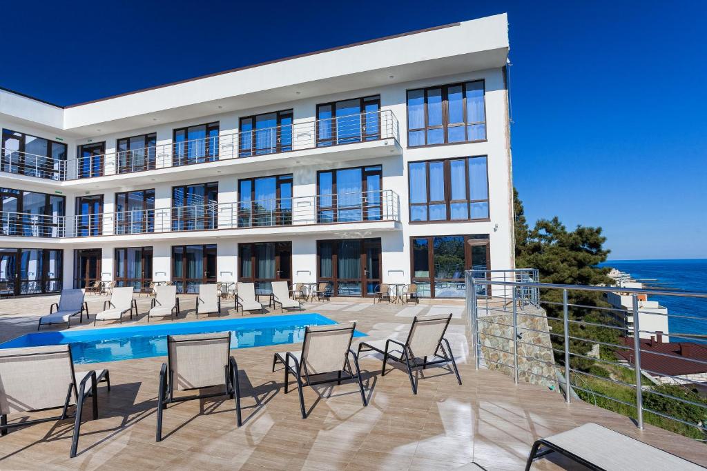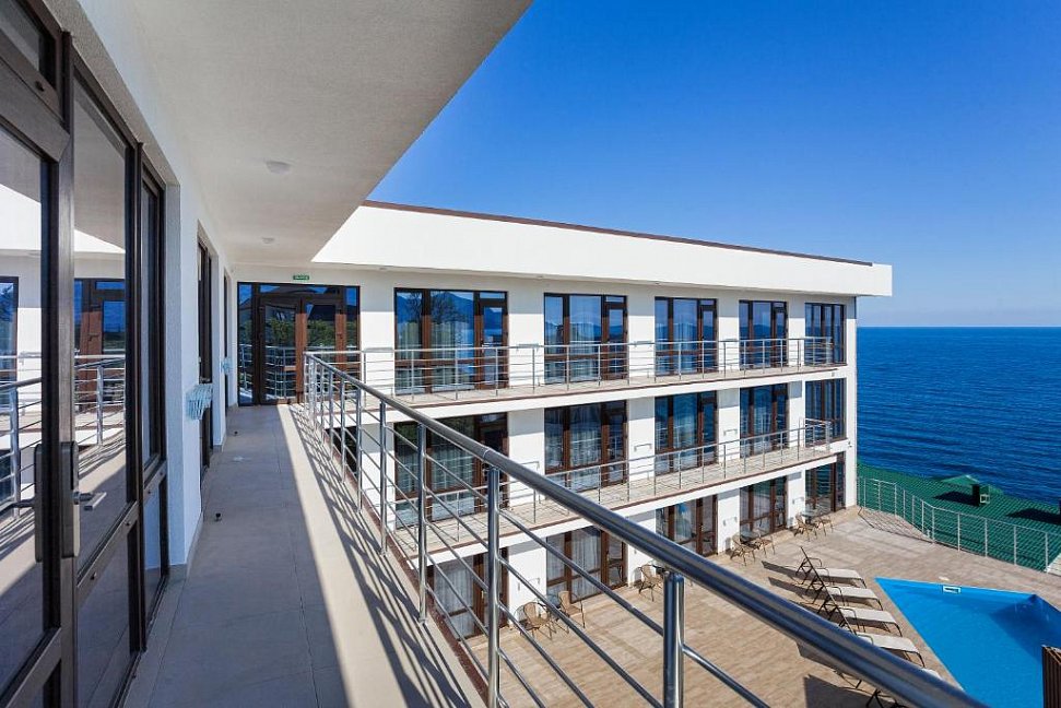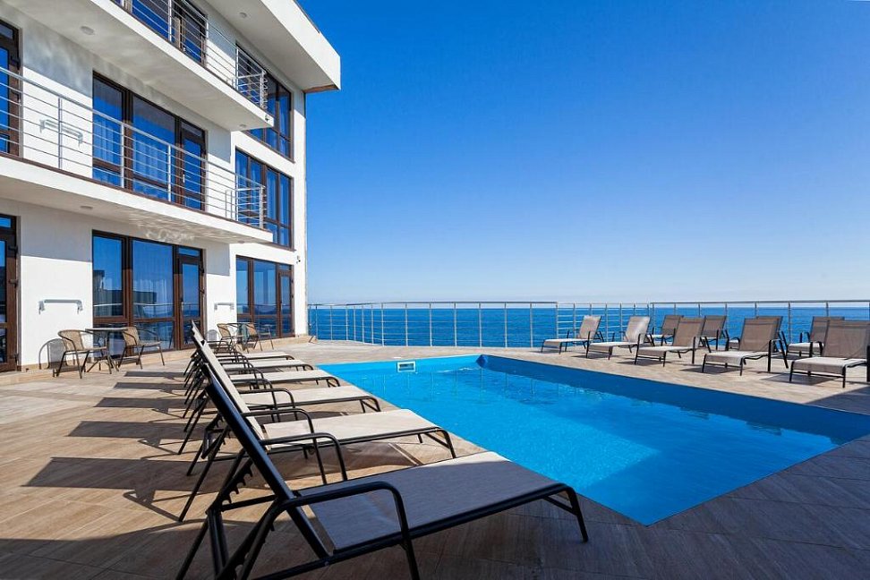 Удивительный вид из номеров отеля на Черное море и бухту, расстилающуюся под вашими ногами, просторный бассейн с потрясающим видом, шаговая близость к морю с прекрасным мелкогалечным пляжем – это первое, что можно сказать о нашем отеле в Ялте.