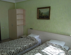 кровати односпальные, кровать двуспальная, прикроватные тумбочки, стол, стулья, шкаф