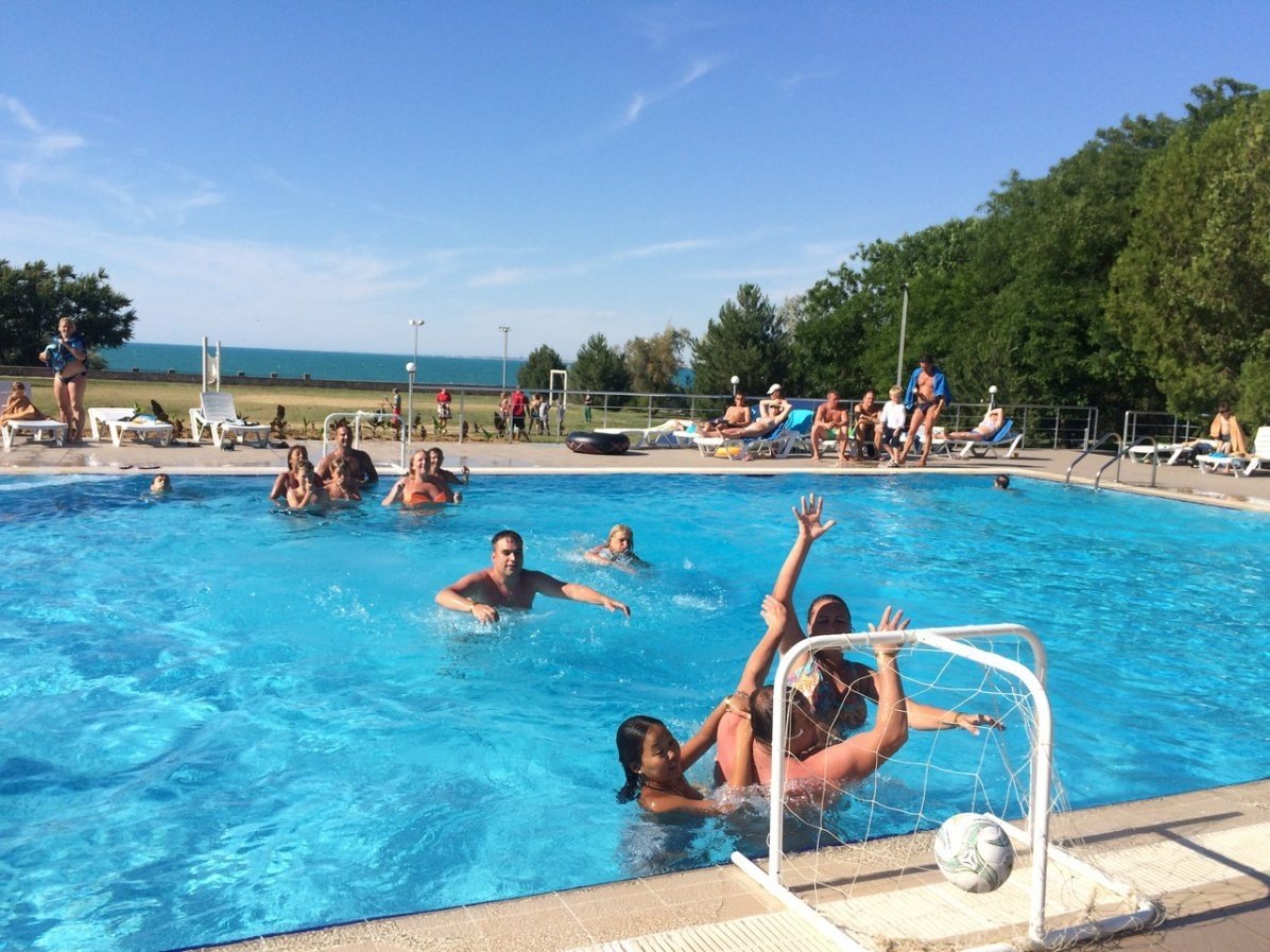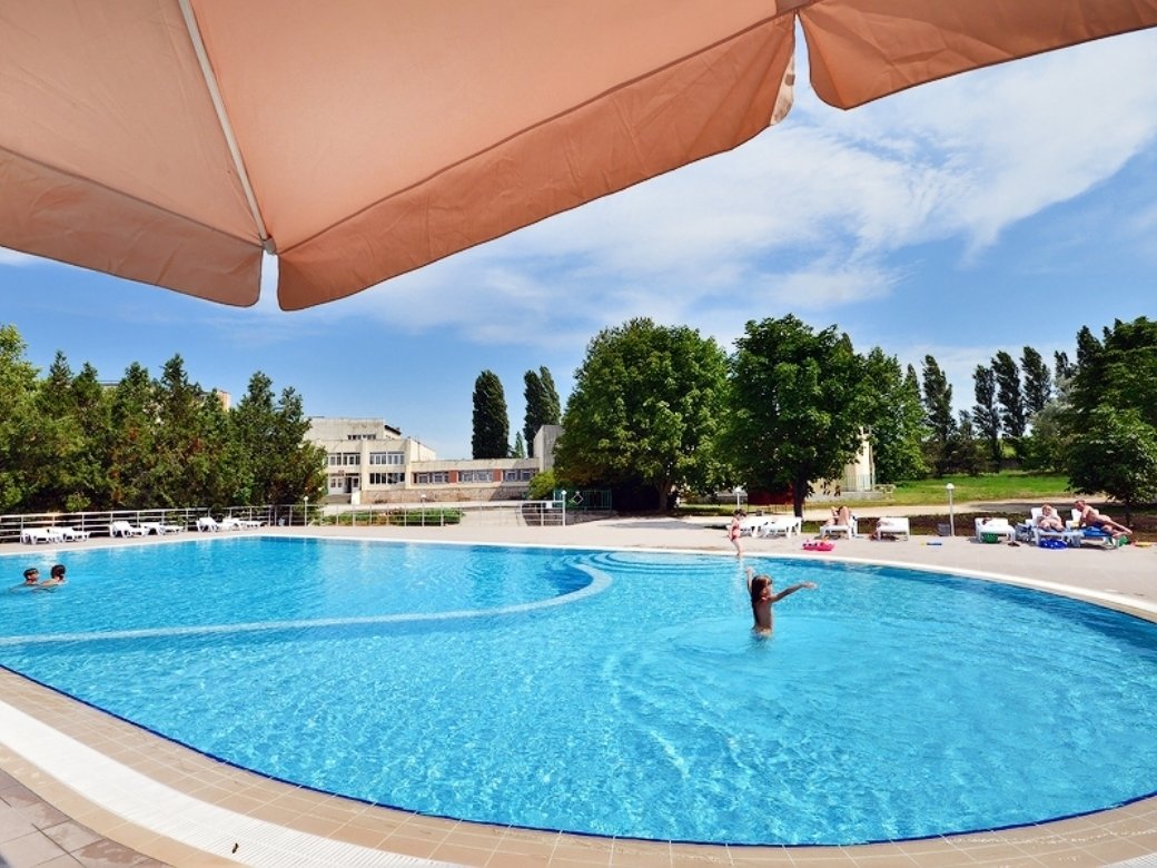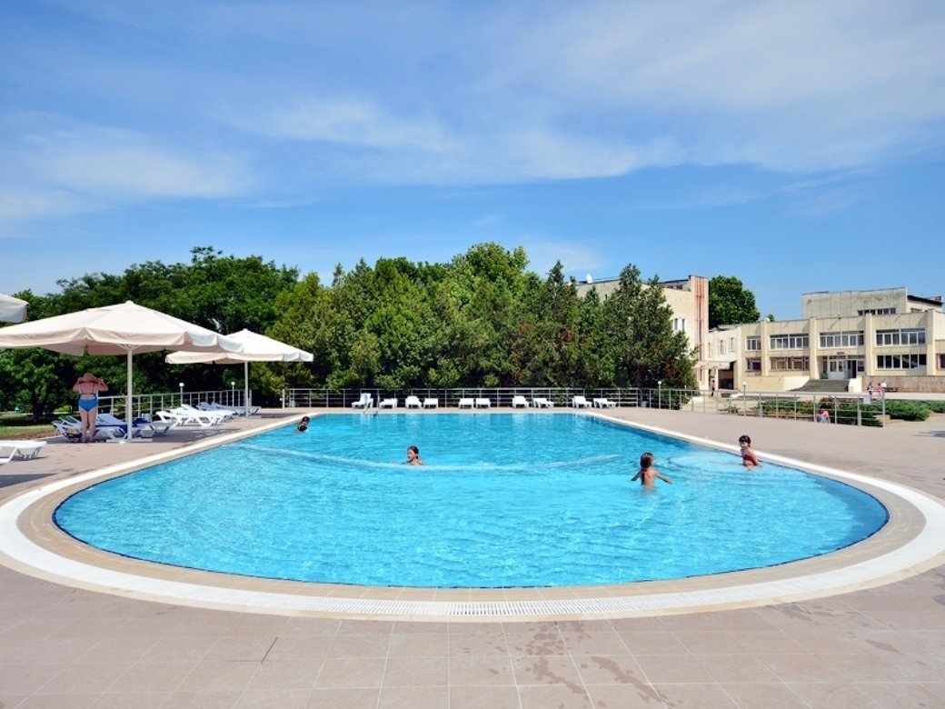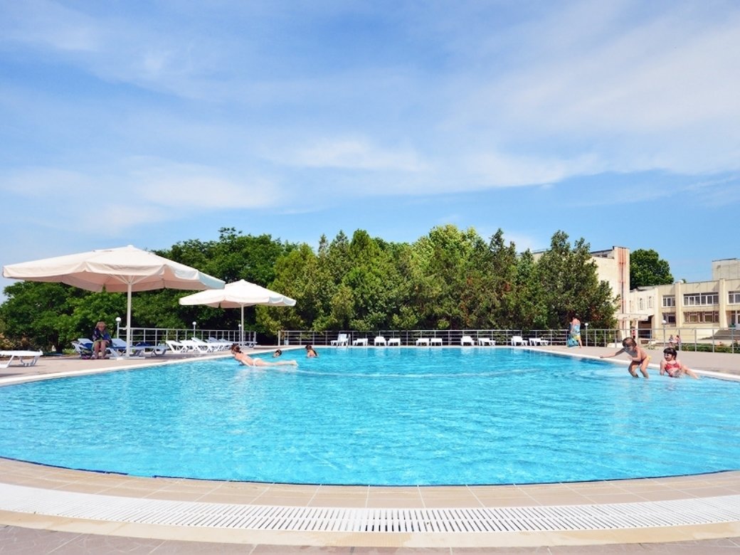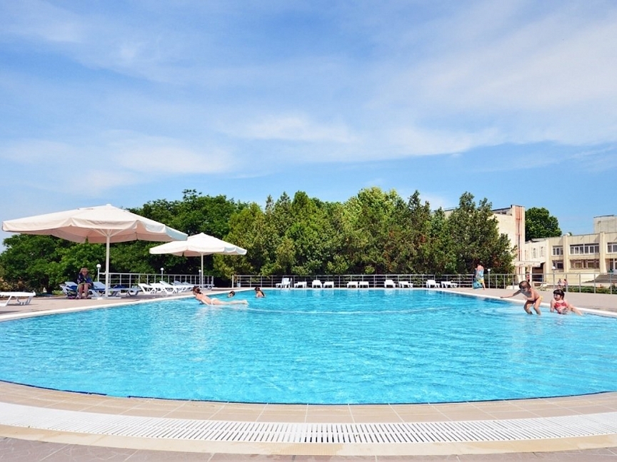 • Бассейн открытый, 22х10, вода пресная. Детское отделение. Шезлонги, зонты.