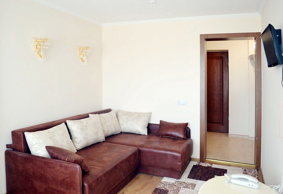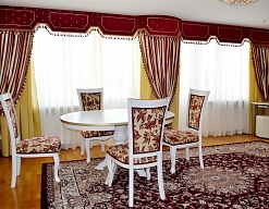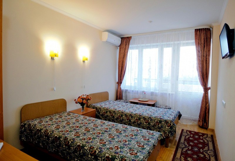 Из положительного: очень красивая, ухоженная территория, много цветов и статуй, фонтанов, деревьев и кустарников. Территория большая, удобно и гулять и заниматься спортивной ходьбой и прочее. На этом плюсы и закончились. теперь о минусах - на 4 звезды отель санатория не тянет! Туалетная бумага в номере -из макулатуры -самого дешевого качества! Кондиционеры в номере не работали -их не подключили, хотя днем температура достигала до 33 градусов в плюсе! Халатов в номерах типа "Престиж" - отсутствуют, что уж говорить о номерах ниже рангом! А было бы удобно ходить на процедуры именно в халатах, как это делают во многих санаториях по всему миру! В номерах нет даже настенных часов - очень не удобно! А телевизор хоть и плоский, но всего 22 или 24 дюйма - очень маленький - причем на пустой стене напротив кровати. Теперь о процедурах - у меня была путевка с лечением - нужные процедуры даются в минимальном количестве, зато не "профильные" процедуры идут номером 11 или12 - например, орошение десен, ингаляции, галотерапия (соляная комната) - конечно для общего укрепления организма - это здорово, но хотелось бы процедур по профилю заболевания. Конечно, можно процедуры назначить и докупить! Но зачем же так делать??? Во всем чувствуется "совдеповщина", такое ощущение, что ты в 90-х годах 20 века. За все нужно платить и доплачивать! Мыслимо ли - бассейн на территории санатория - платный для отдыхающих! Заплати 300 рэ, потом пользуйся... Далее - водо-грязелечение - если отдыхающий погружается в ванну в голом виде - то и мед. персонал должен быть того же пола. А тут тебя мажут грязью приятные женщины среднего возраста (мед. персонал), причем мажут везде рукой в перчатке с грязью и по половым органам тоже!!! В кабинетах получения водо-грязелечения тоже нет настенных часов - процедуру отпускают с помощью песочных часов, пусть так, но для пациента их не видно и понять продолжительность процедуры (сколько осталось) - не возможно. Вот и лежишь, "получаешь процедуру", в полной тишине... А можно было бы включить фоновую спокойную музыку - это бы только положительно влияло на процедуру! Далее - стол, на котором тебя мажут грязью - абсолютно плоский, нет поручней. Как пациенту, обмазанному грязью перевернуться? или встать после процедуры если пациент 60+ или с ограничениями движения??? Было бы идеально - если бы стол мог изменять угол наклона - вплоть до почти горизонтального состояния -это было бы очень удобно!!! Ах да, это было бы очень затратно для санатория, но при ценнике в средний сезон, примерно, в 5000 рублей в сутки с одного пациента - думаю это не огромная проблема! Теперь питание. Питание подается в столовой по заказному меню. Заказал за сутки из предложенного - и получи! Не очень удобно для 4 звездочного санатория! Идеально было бы - шведский стол, тем более что санаторий почти всегда заполнен. Ах, да, это опять удорожание. Еда однообразная, если подают рыбу -то она всегда сухая, что такое сметана или майонез или соус - здесь видимо не знают - кладут как по "карточкам". Мне могут возразить - на столе всегда стоит кетчуп, горчица и хрен, но майонеза, сметану -нет!!! Вот и получается что все салаты - очень сухие! В вечернее время проводятся дискотеки, караоке и т. д. За 2 недели - фильмы показали всего 2 раза - можно было бы и почаще!