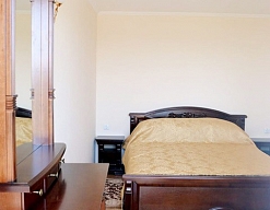 вешалка, зеркало, кровать полутороспальная, прикроватная тумбочка, столик журнальный, стулья, тумба багажная, шкаф