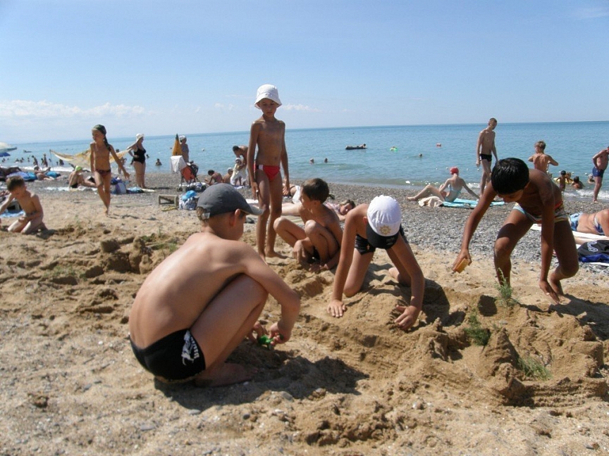 - собственный пляж, песок