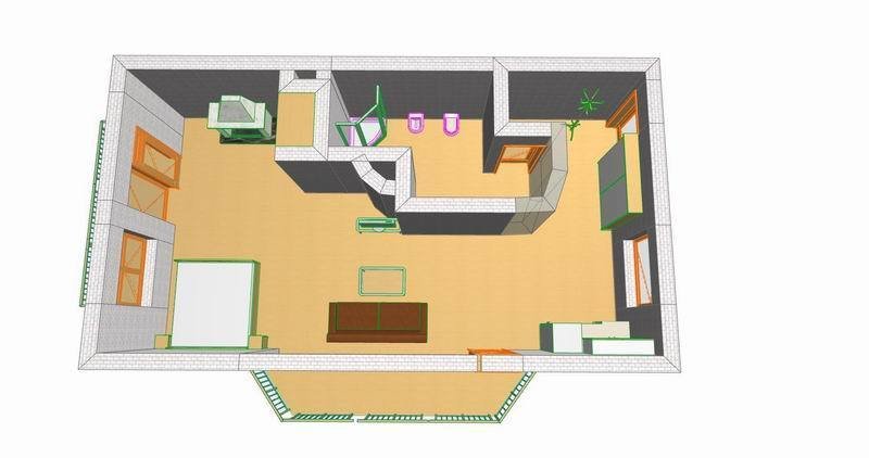 камин,чайник,раскладной диван